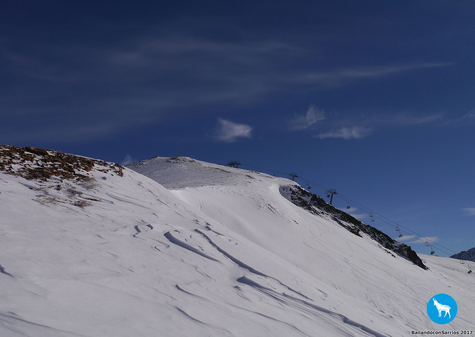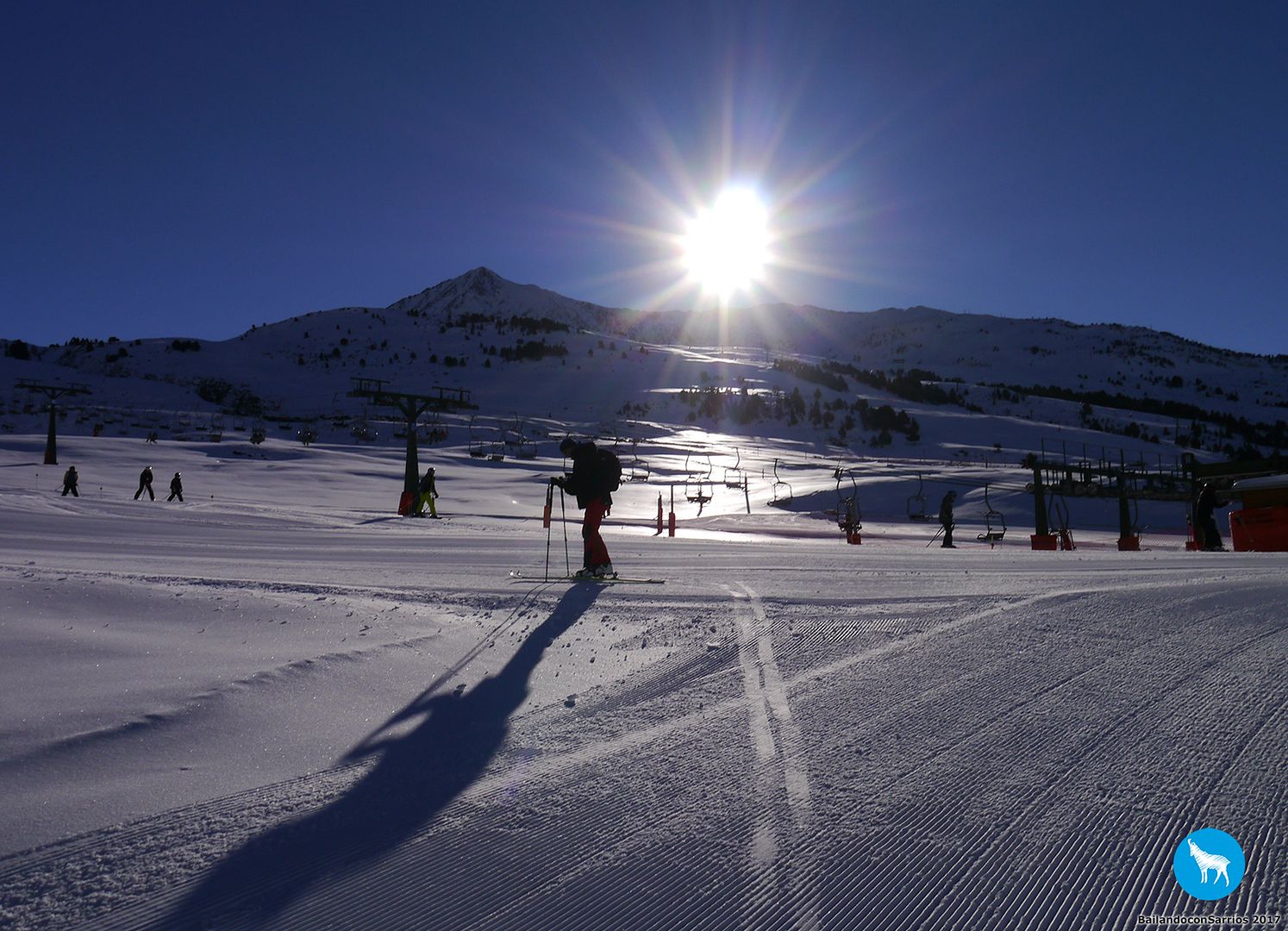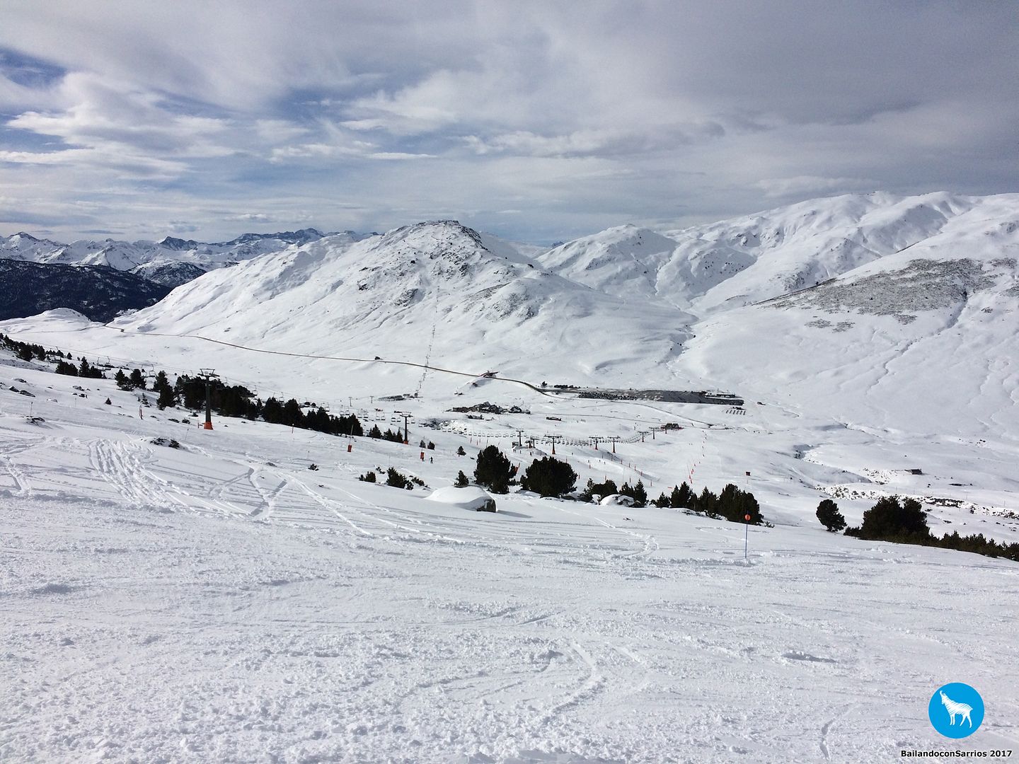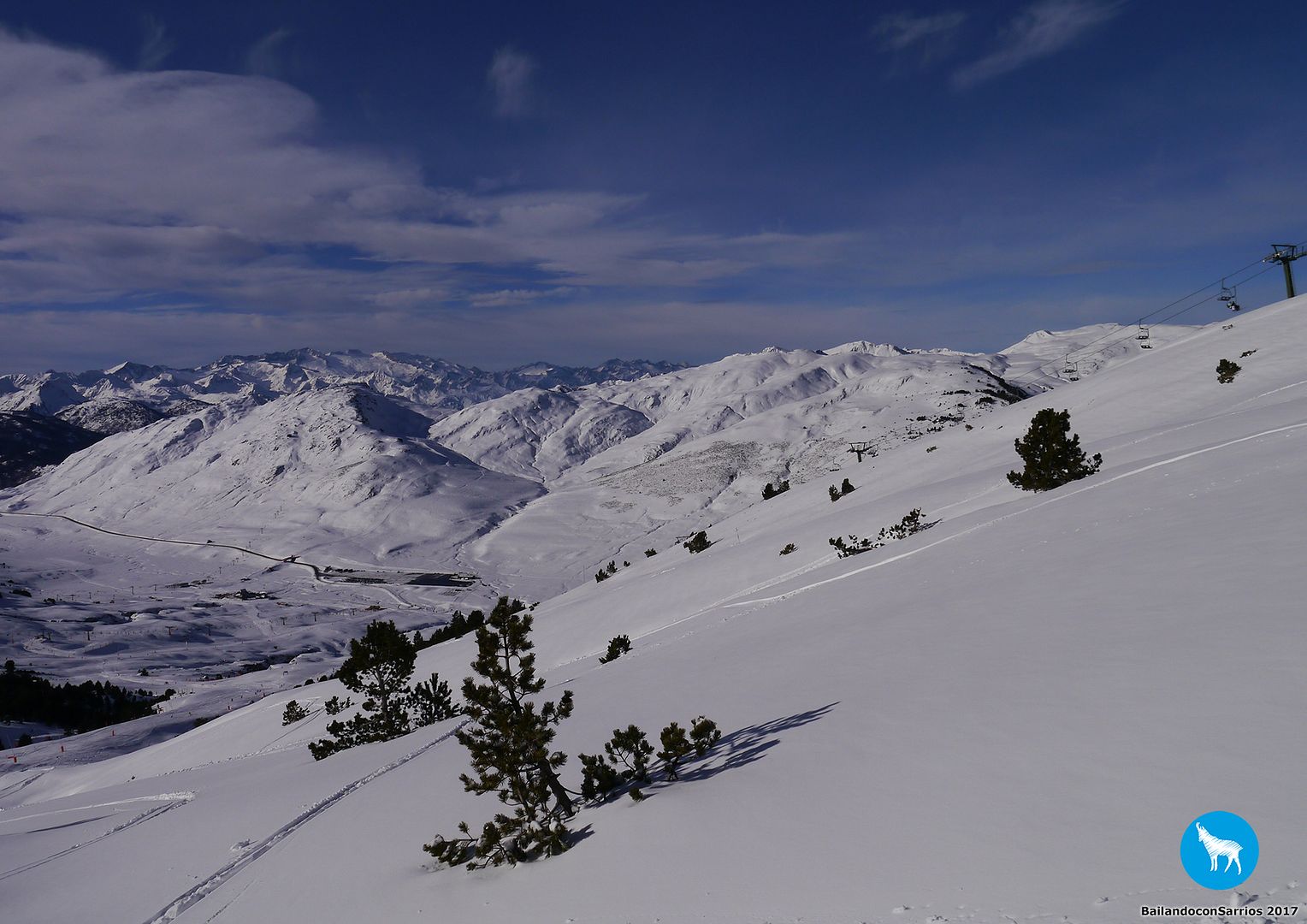 Después de charlar sobre por dónde bajar, Martín me propone descender por la pista azul Colhet de Marimanha y por Ta Dessau, por lo que tendremos que coger el famoso arrastre, veremos si no doy con mis huesos en el suelo... :)
