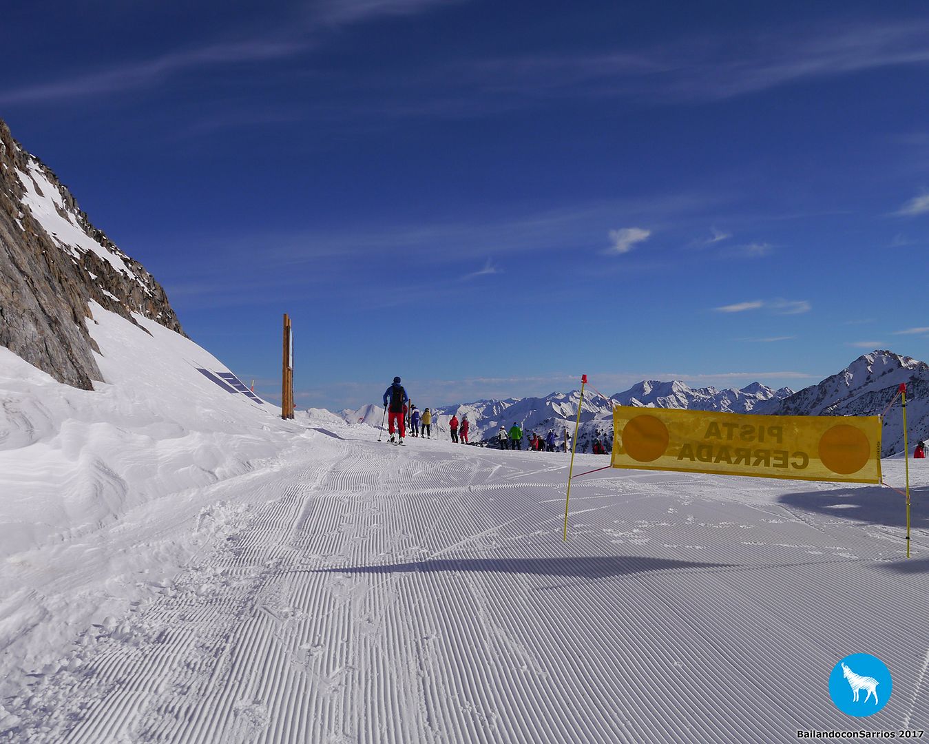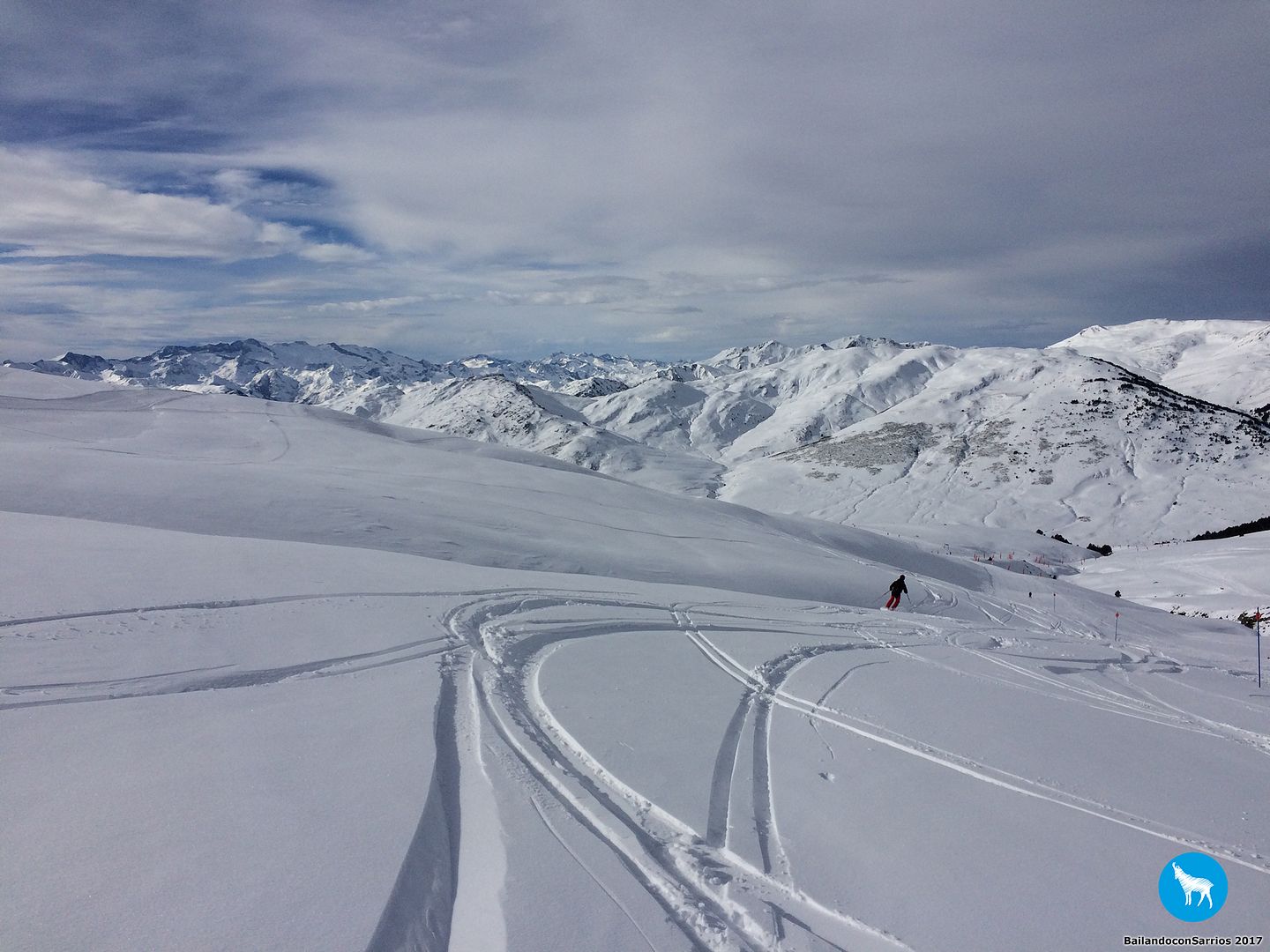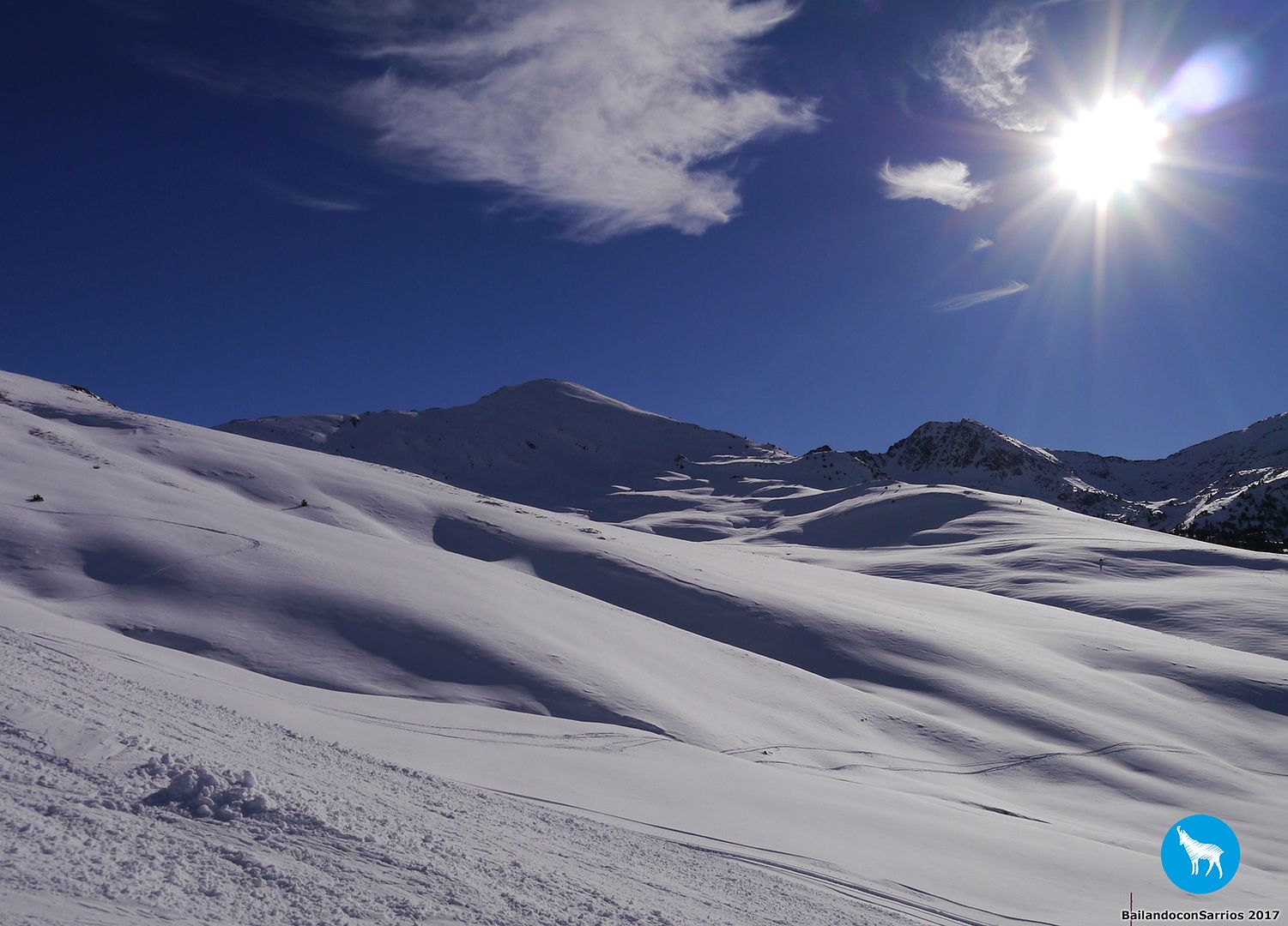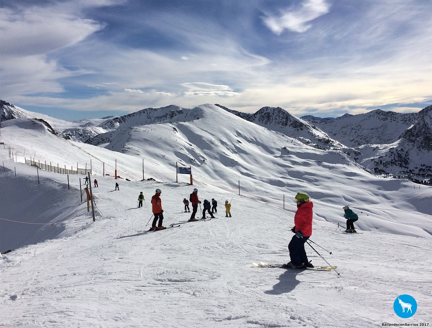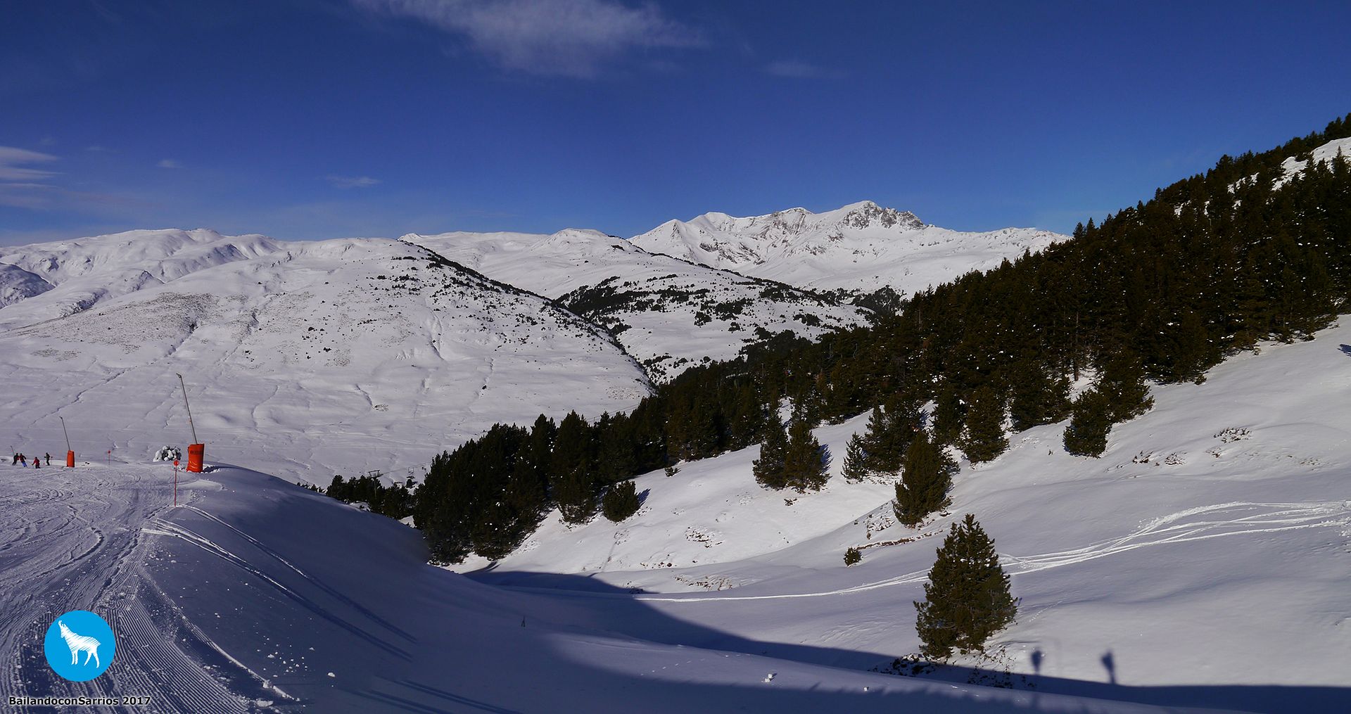Voy enlazando unos cuantos giros con muy buenas sensaciones por lo que, unos metros más abajo, le propongo a Martín salirnos de la pista y esquiar un poco por nieve virgen (!!!)... Martín me mira y se carcajea, veremos lo que tardo en caerme.