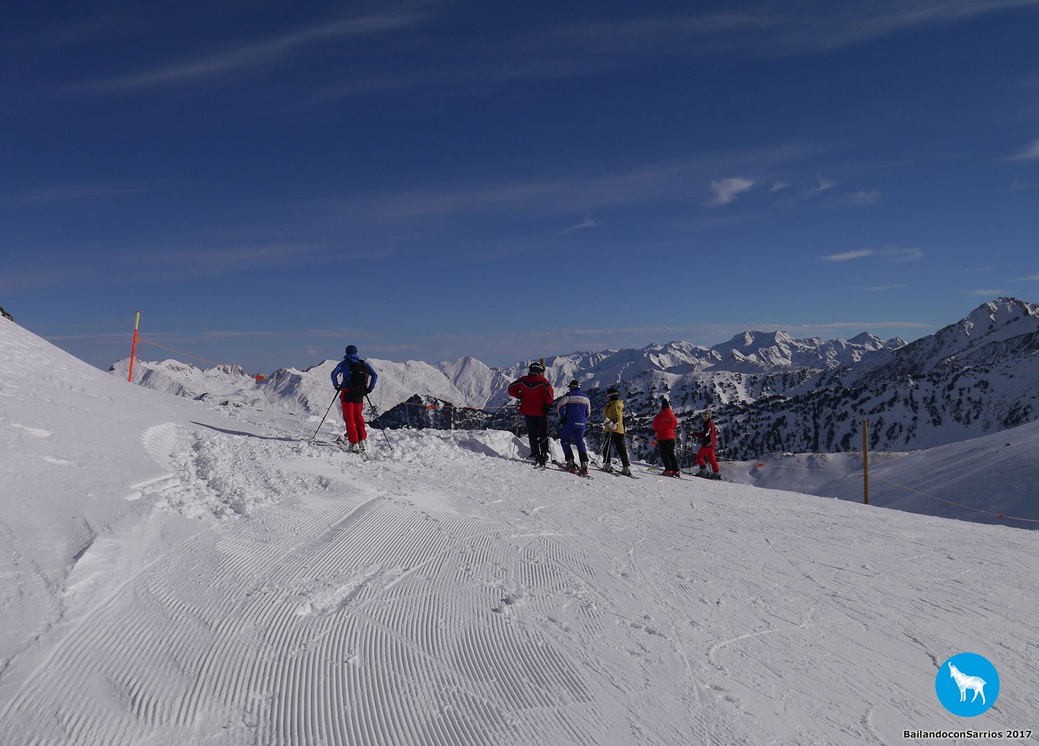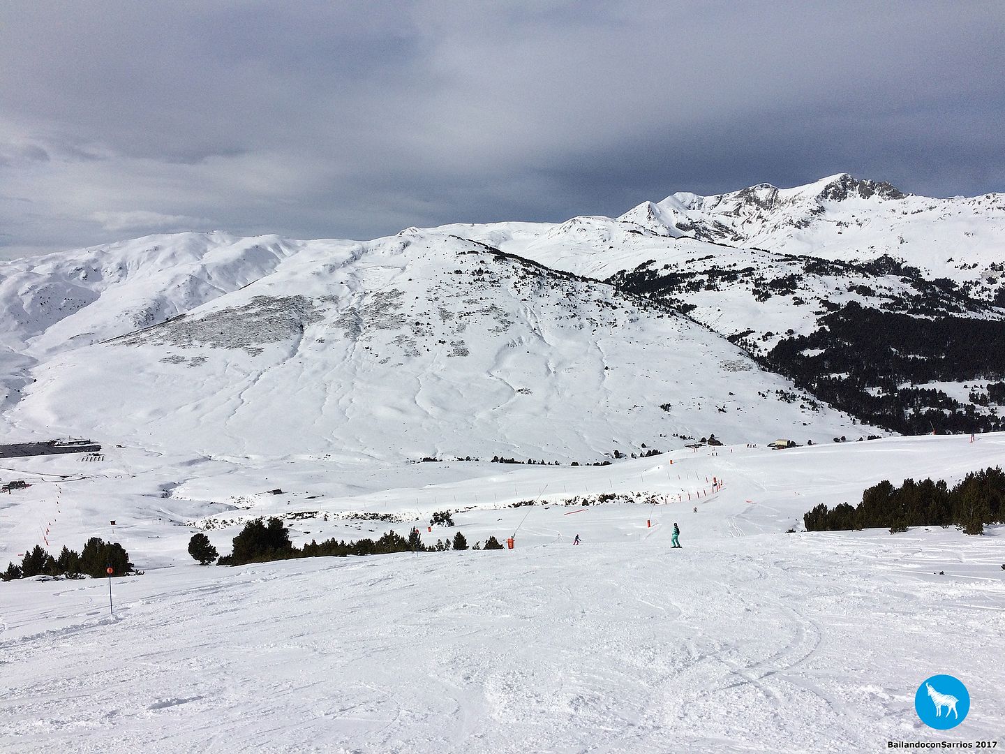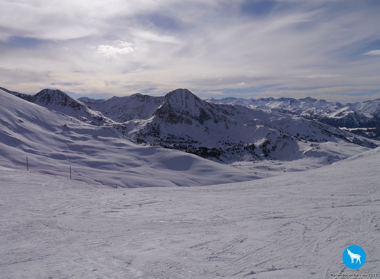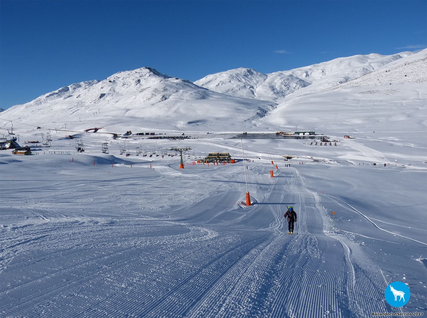 Voy enlazando unos cuantos giros con muy buenas sensaciones por lo que, unos metros más abajo, le propongo a Martín salirnos de la pista y esquiar un poco por nieve virgen (!!!)... Martín me mira y se carcajea, veremos lo que tardo en caerme.