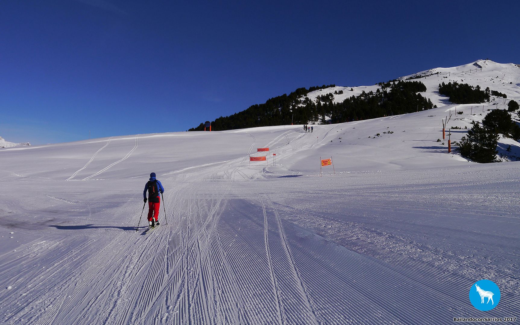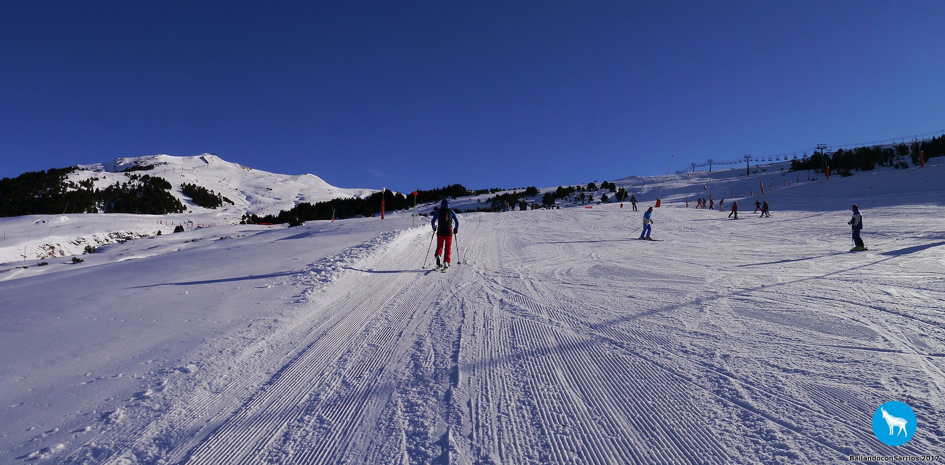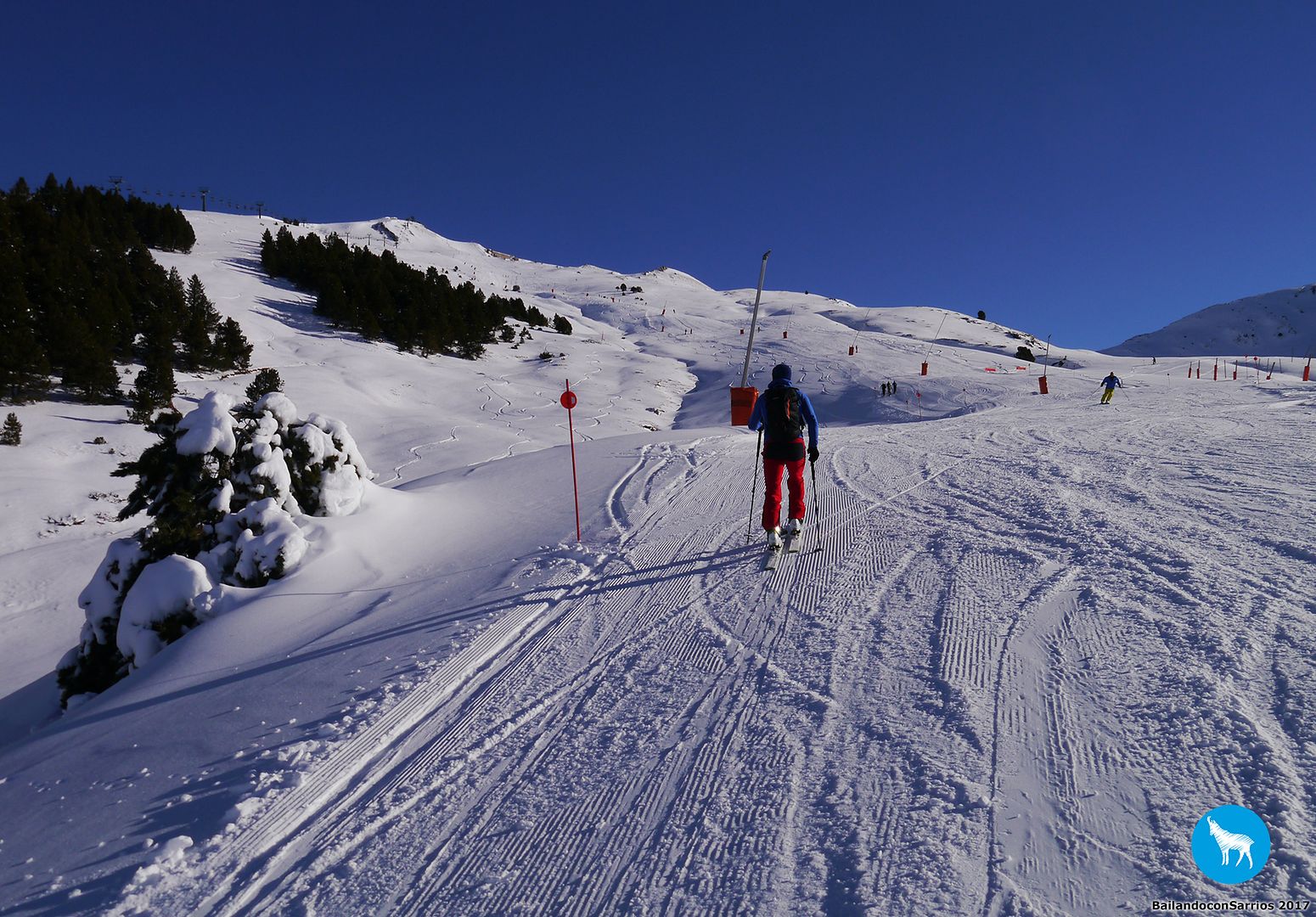 El descenso se realiza siguiendo pistas azules dentro del dominio esquiable de Baqueira Beret.