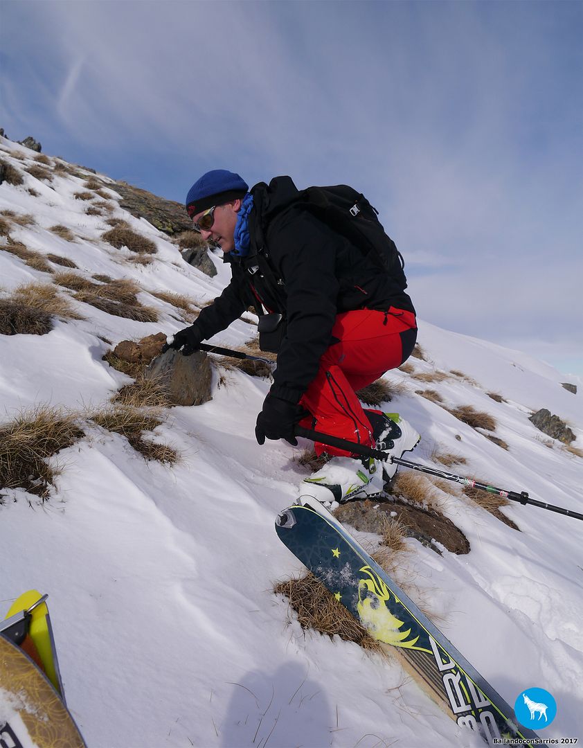 Es hora de prepararnos para el descenso: ritual de las focas, comer una barrita... y yo con los nervios a flor de piel, como siempre que me toca bajar esquiando... :)