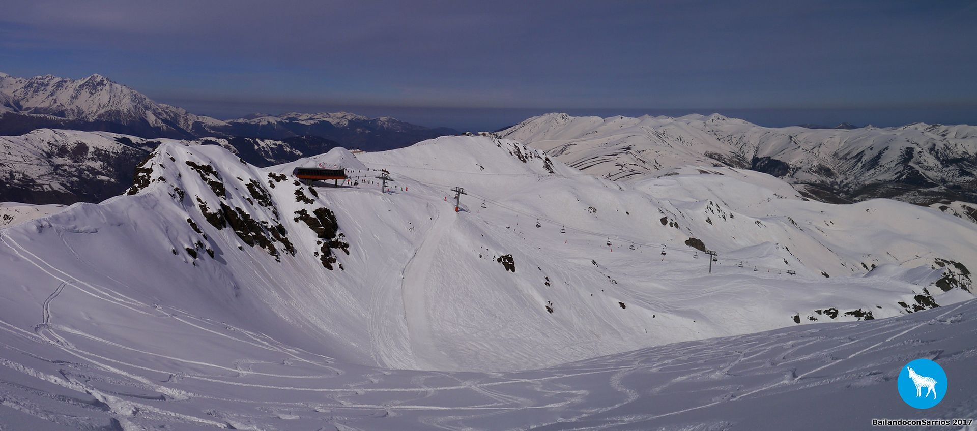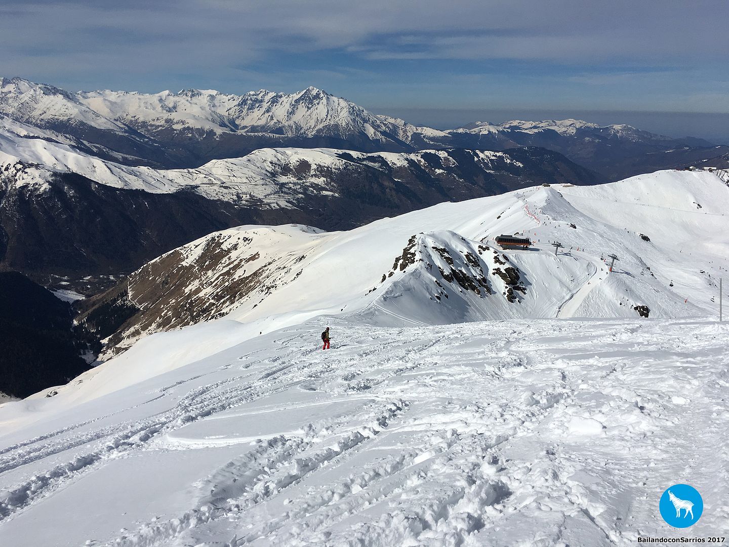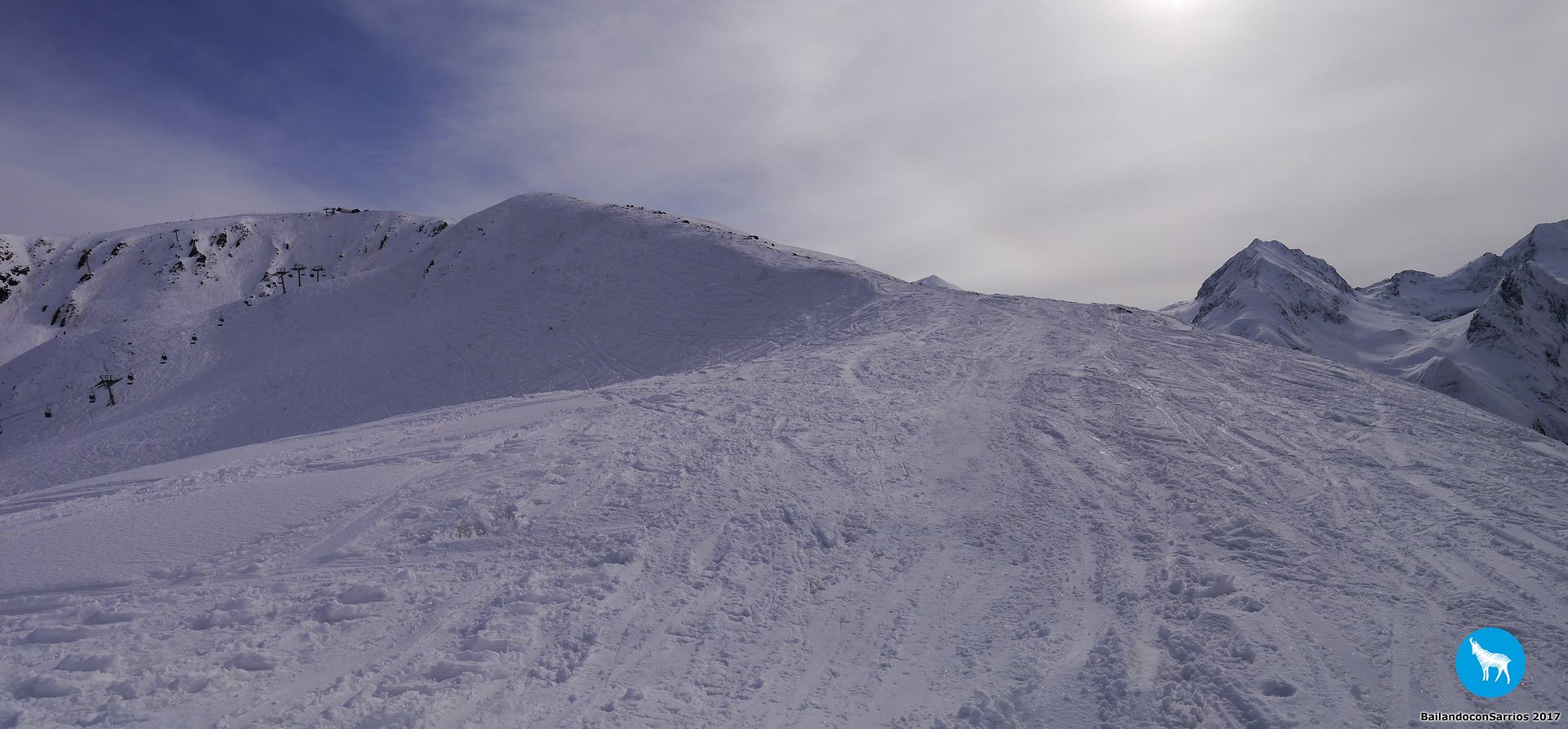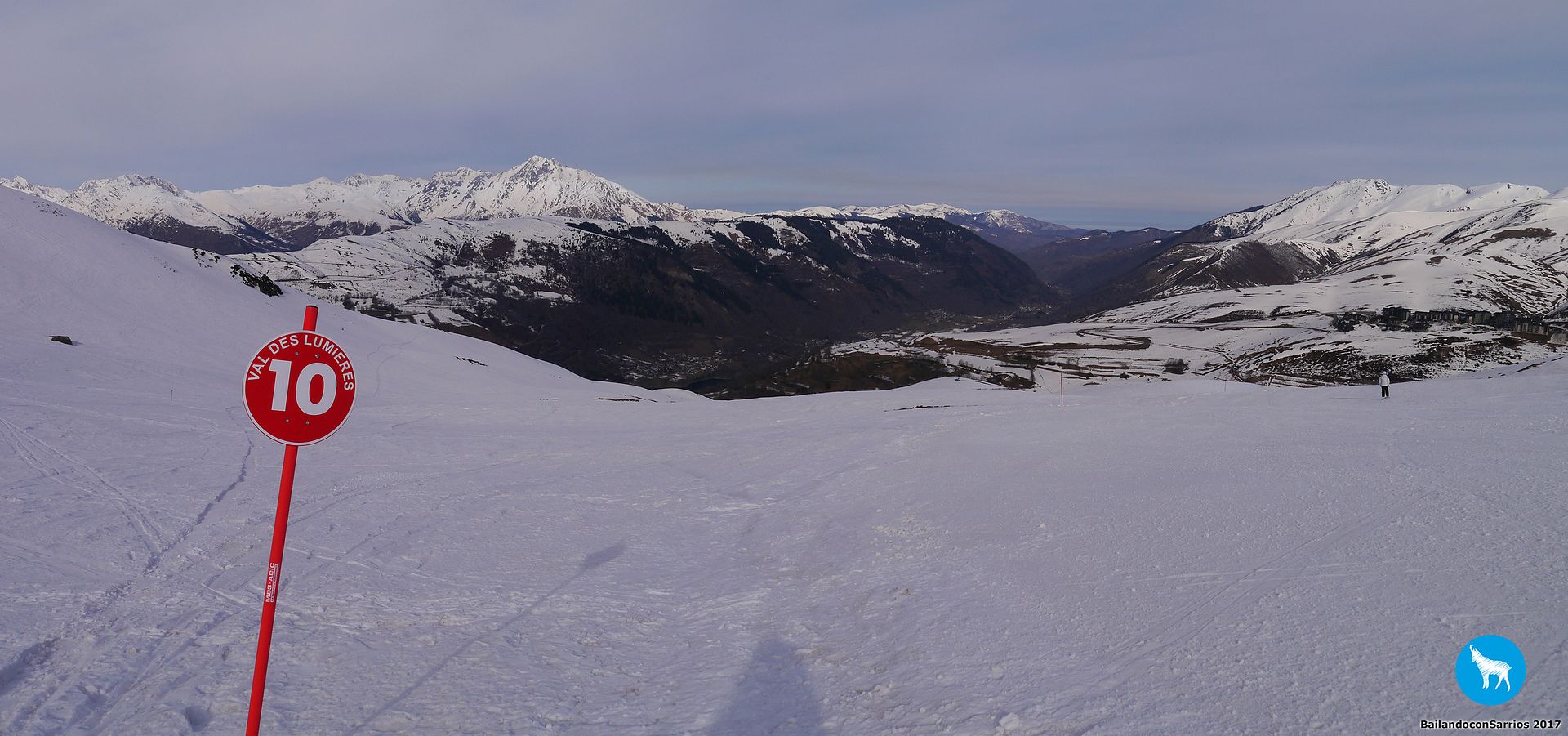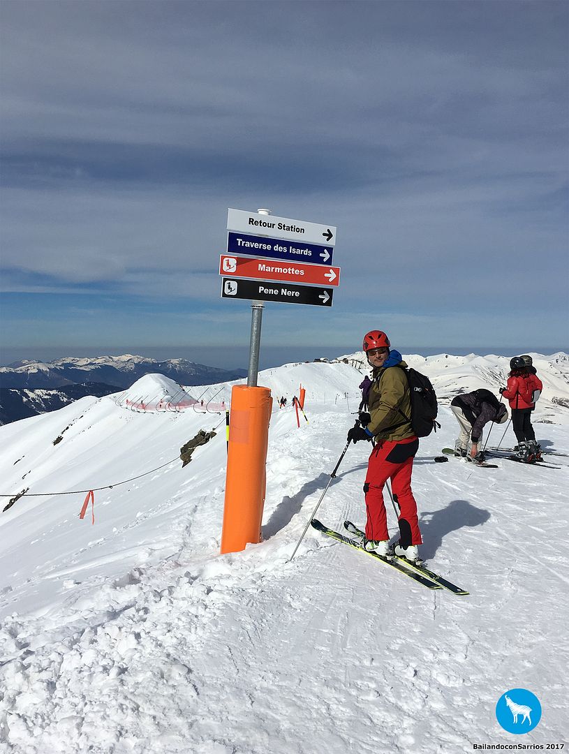 Comenzamos el descenso por la pista Traverse des Isards, una pista azul bastante ancha pero entretenida... lo cierto es que esta estación es como una Baqueira en pequeño pero, como en todas las estaciones francesas, el nivel de dificultad de las pistas es un poco superior.