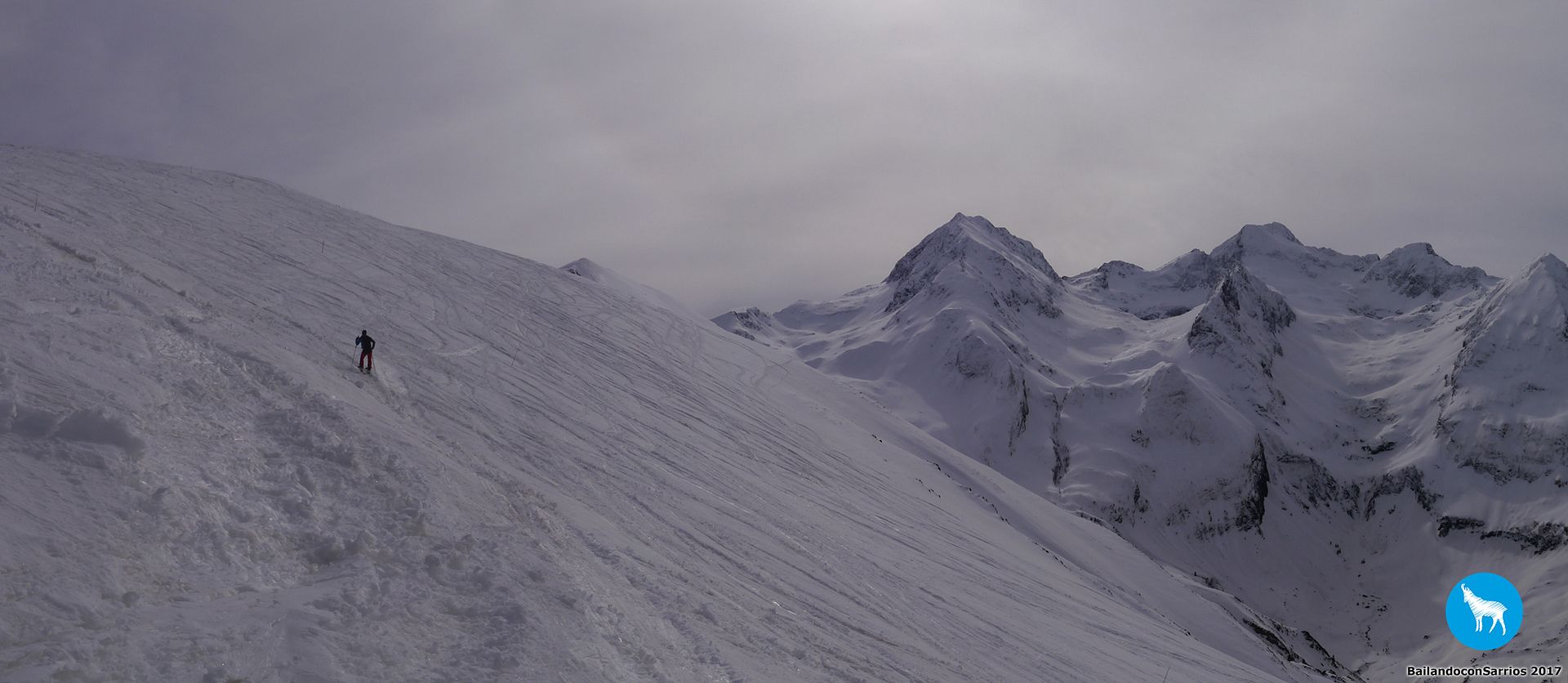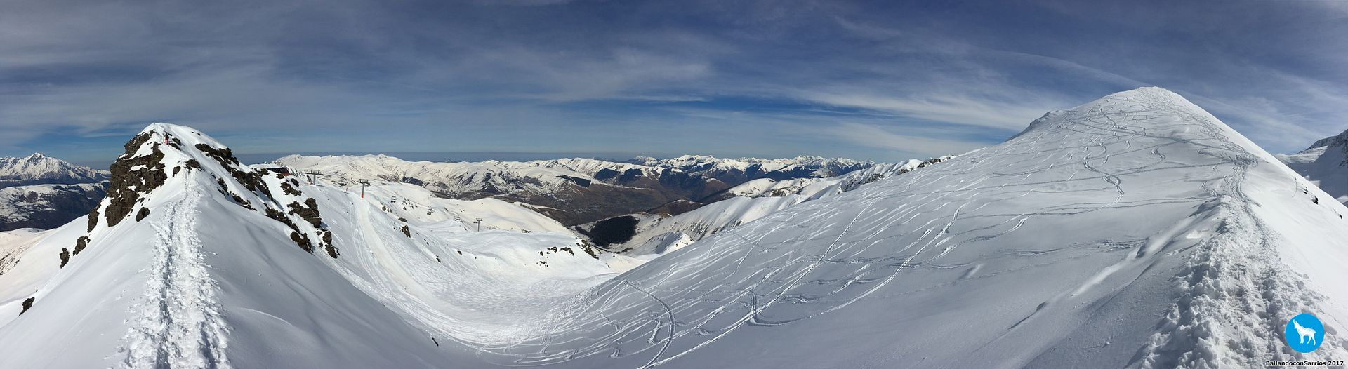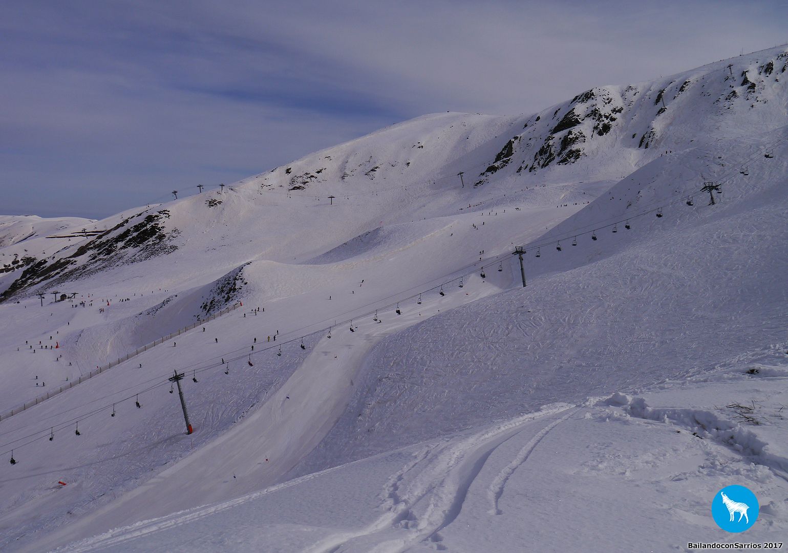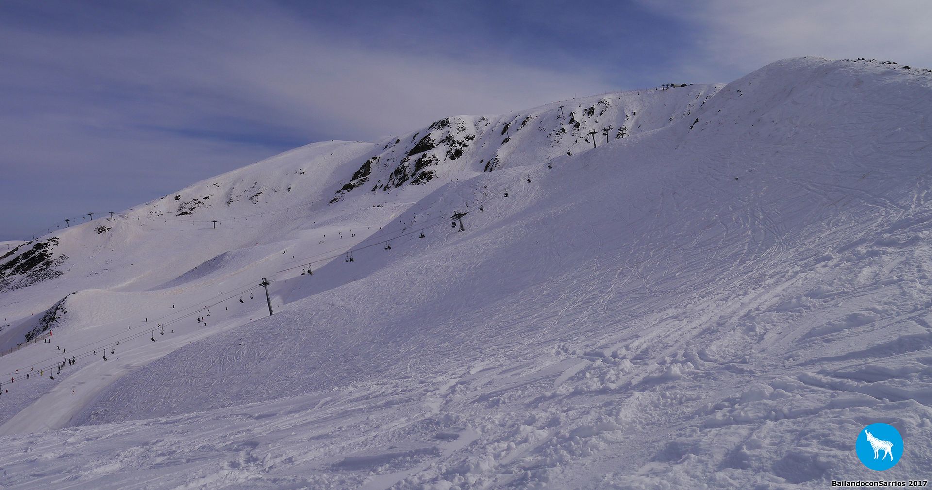 Comenzamos el descenso por la pista Traverse des Isards, una pista azul bastante ancha pero entretenida... lo cierto es que esta estación es como una Baqueira en pequeño pero, como en todas las estaciones francesas, el nivel de dificultad de las pistas es un poco superior.