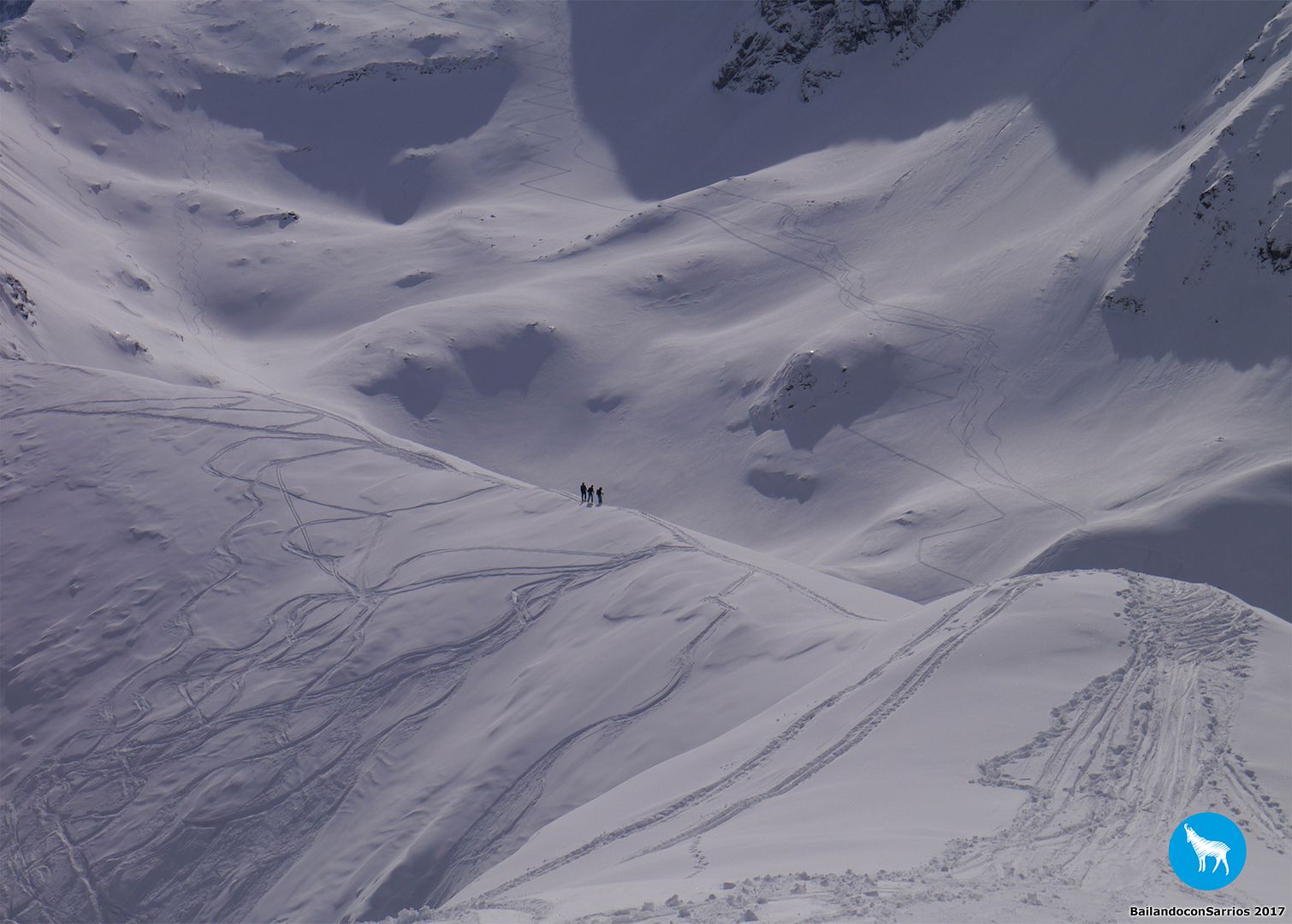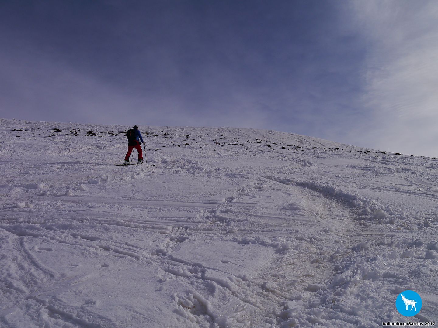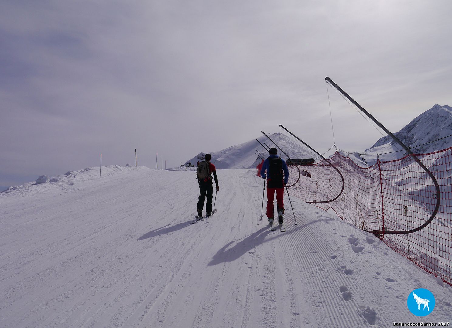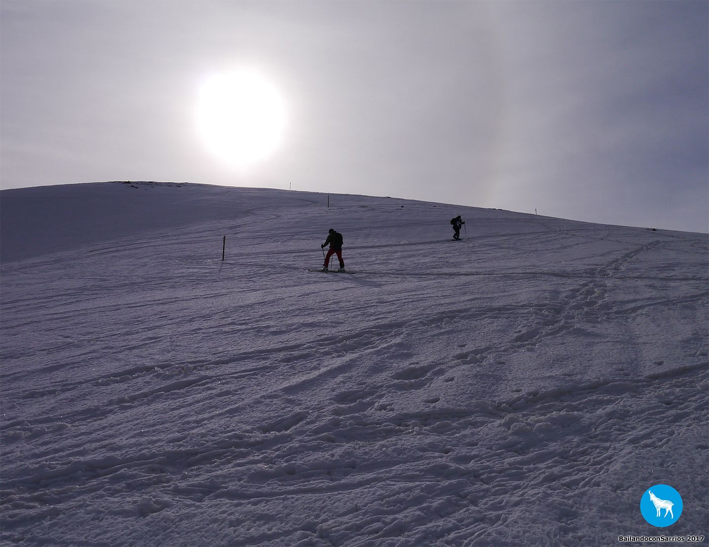 Y llegó la hora del descenso... Martín comienza a bajar y me dice que la nieve está un pelín complicada para mi nivel (!!!)... los primeros metros los gestiono como puedo, mirando de reojo la caída a ambos lados, verás como me descontrole... :O