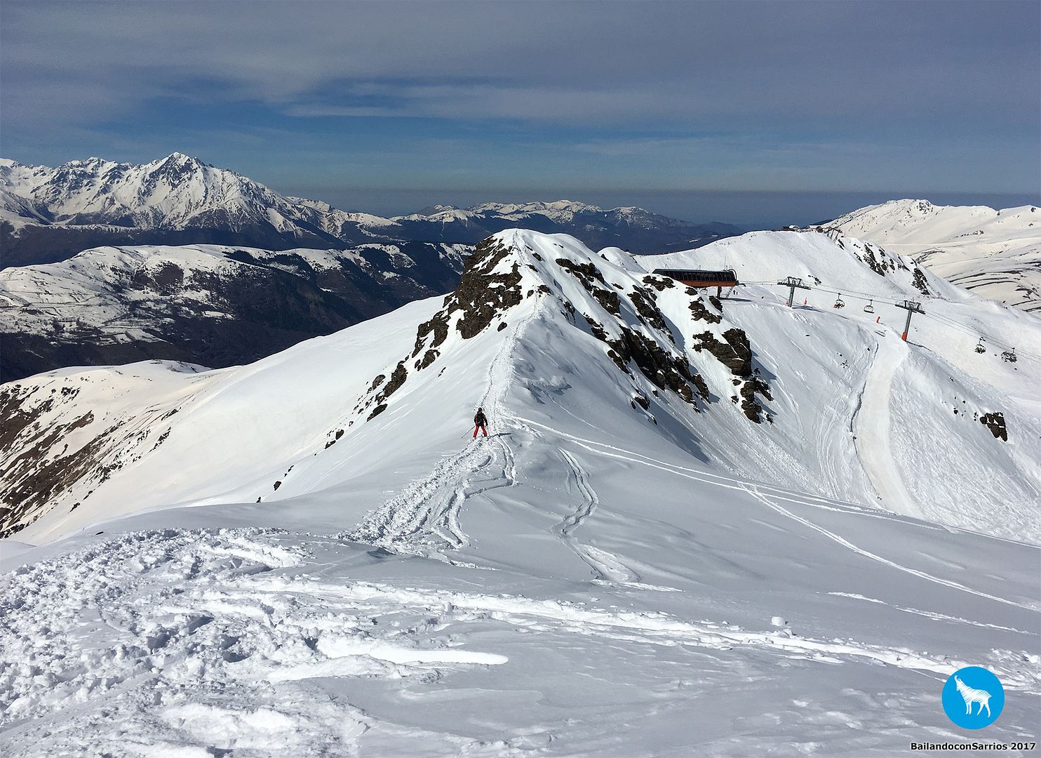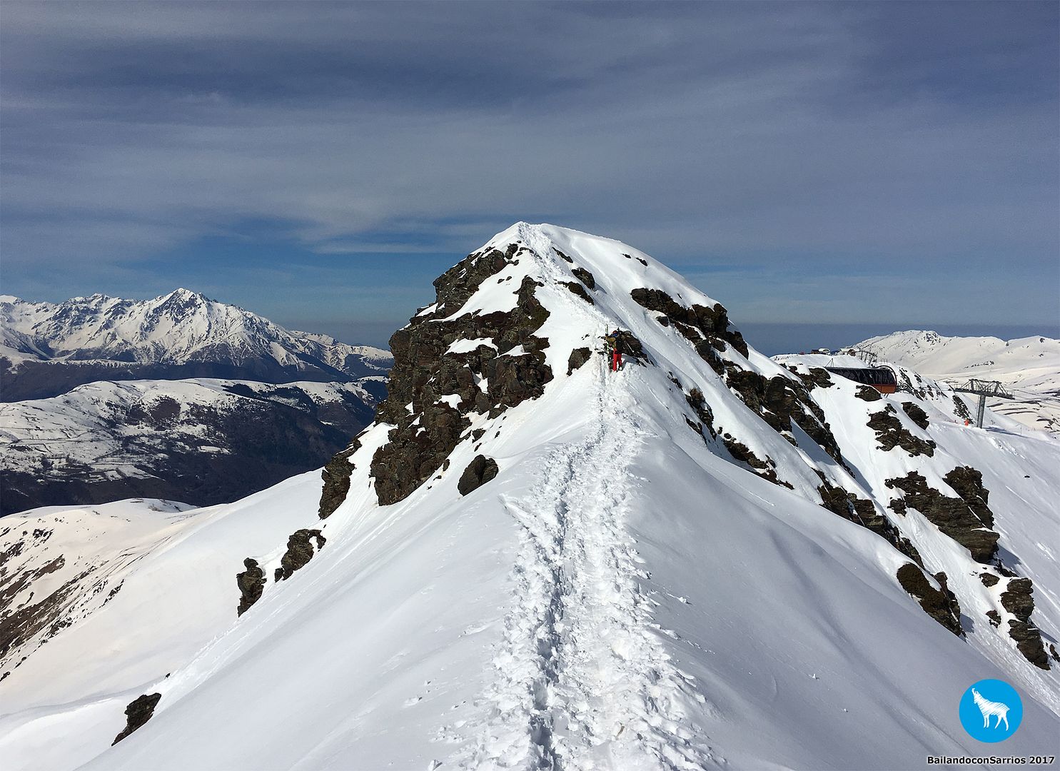 Alcanzamos el final del Telesilla Serre Doumenge y comenzamos a crestear en dirección al Cap des Hittes y a la primera cima del día, Pène Nère, una cota rocosa situada a escasos metros de las pistas de esquí.