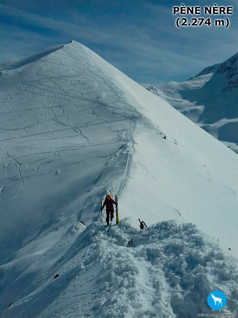 Pendientes de nieve de hasta 40º en el ascenso al Pène Nère y al Cap des Hittes.