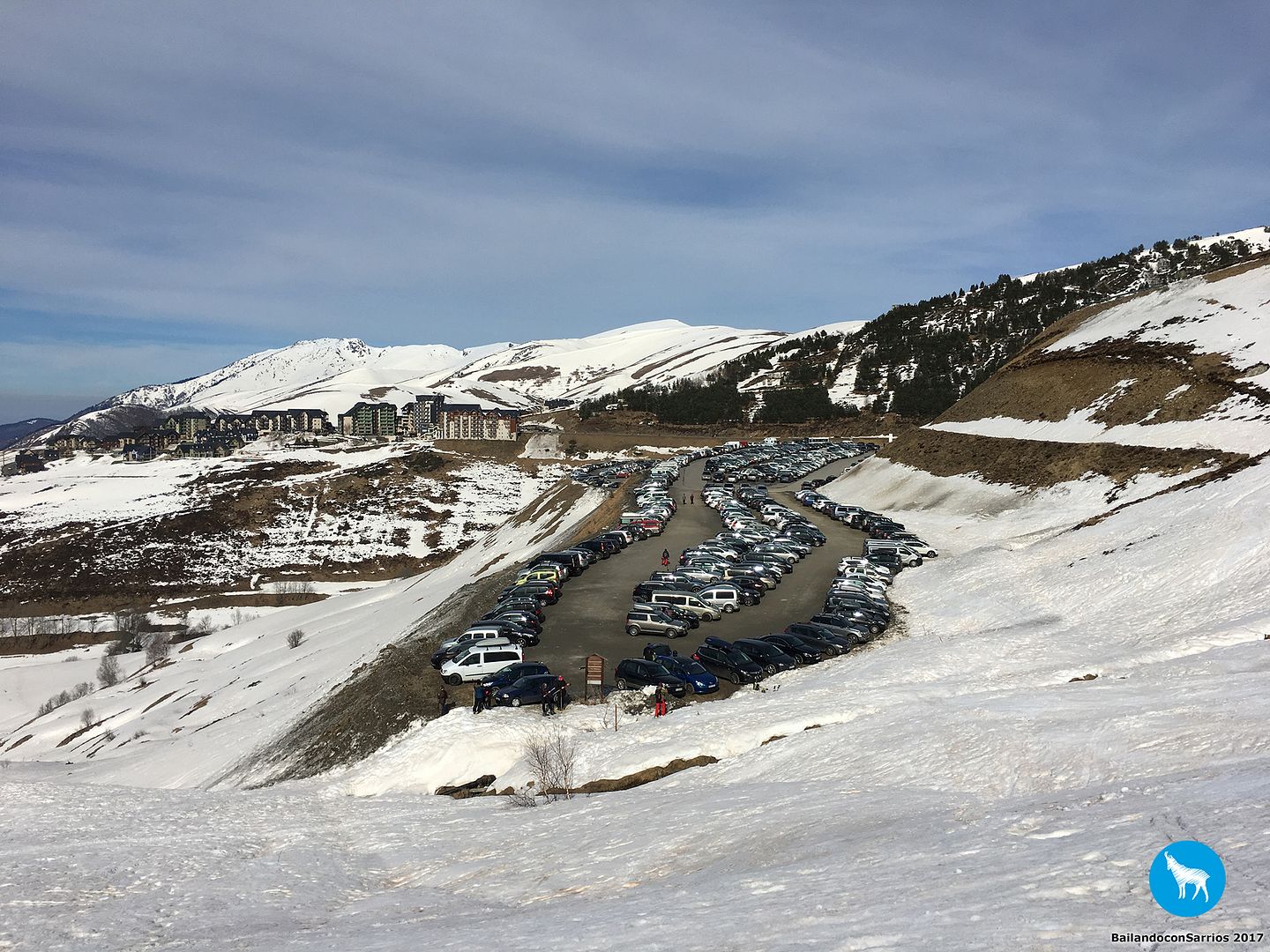 Continuamos hasta alcanzar Peyrasourde Village, a estas horas ya hay bastante movimiento por lo que nos toca aparcar en el penúltimo aparcamiento habilitado de la estación.