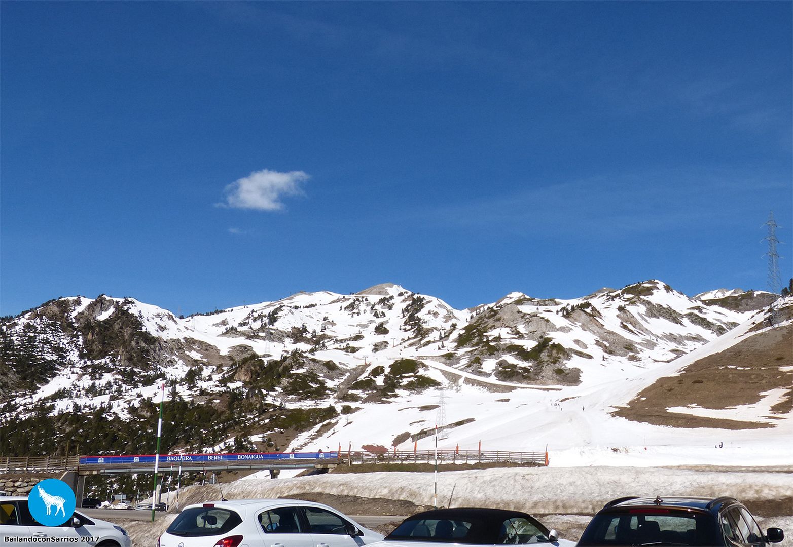 Me cambio de ropa en la oficina y a las 14:05 PM ya estoy saliendo de Vielha de camino al Port de la Bonaigua... hoy es domingo y se nota en el tráfico de subida a BAQUEIRA BERET, impensable hacerlo un sábado en plena temporada de esquí.