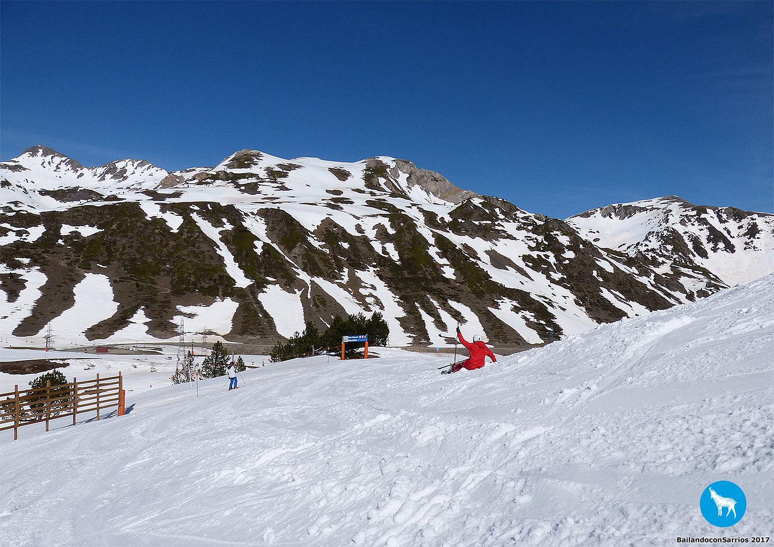 El descenso se realiza siguiendo pistas azules dentro del dominio esquiable de Baqueira Beret.
