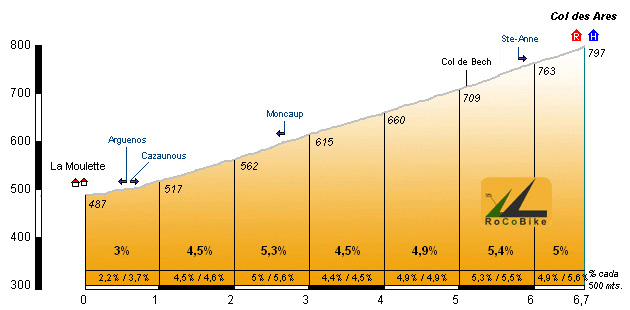 Perfil del Col des Ares (www.rocobike.com).