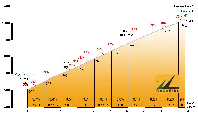 Perfil del Col de Menté (www.rocobike.com).