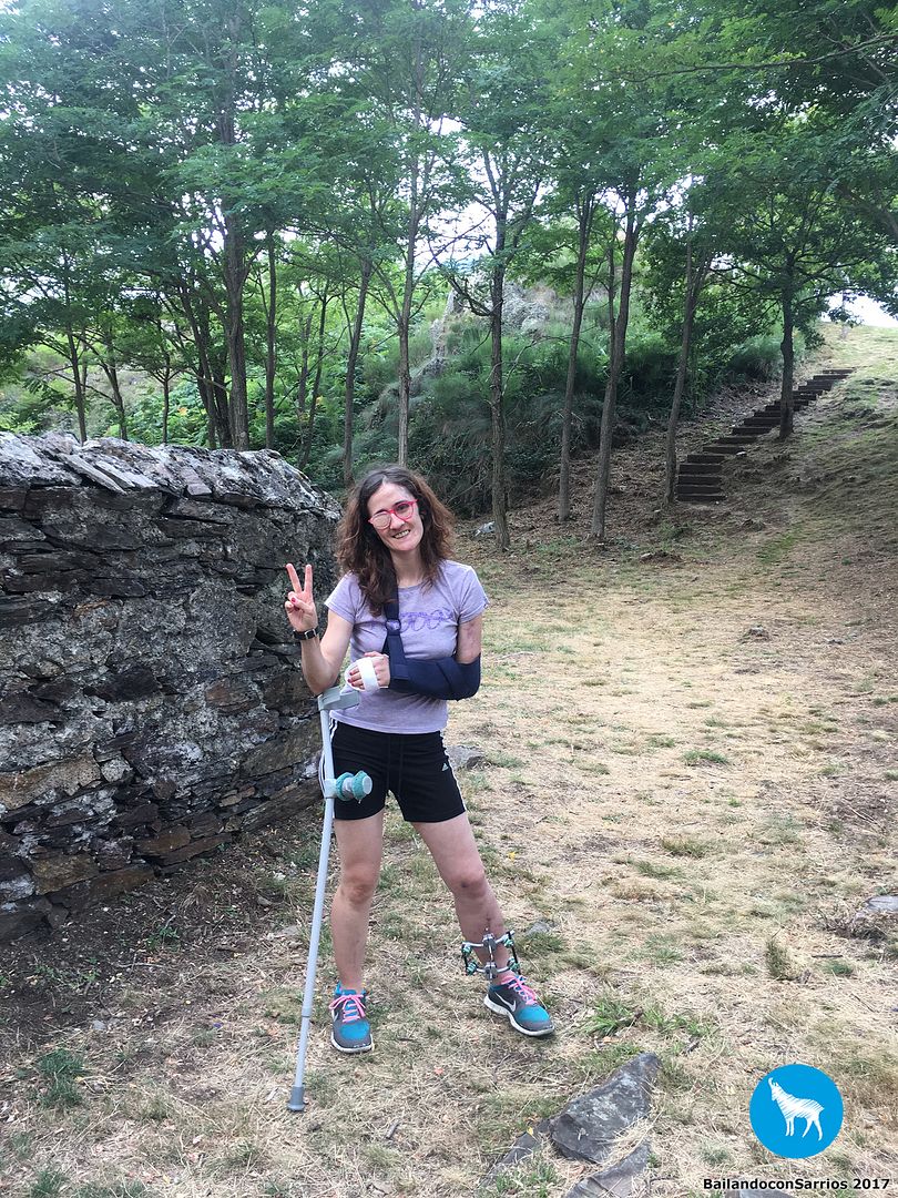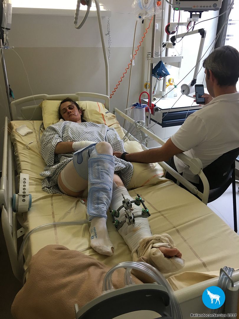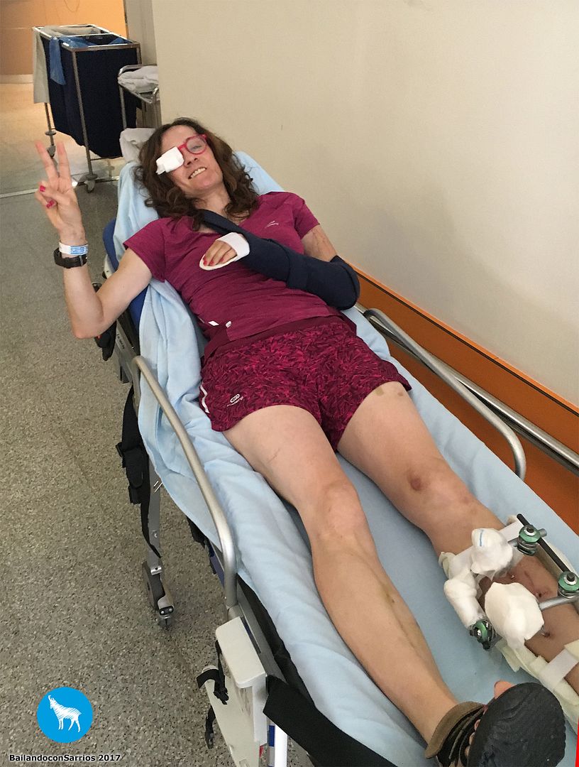 ... mi brazo en cabestrillo y la fijación de titano en mi tibia.