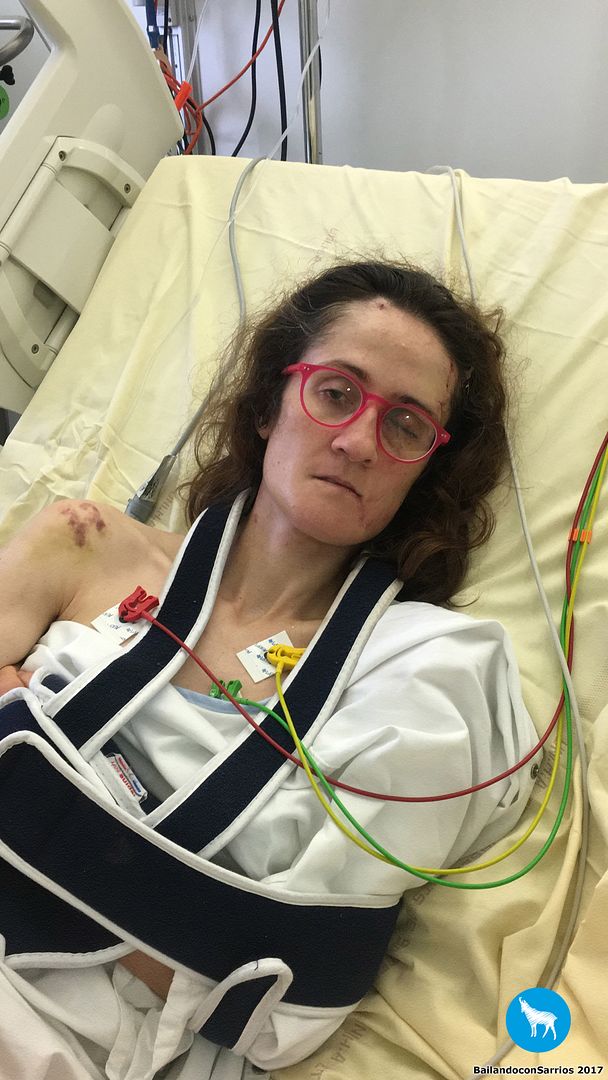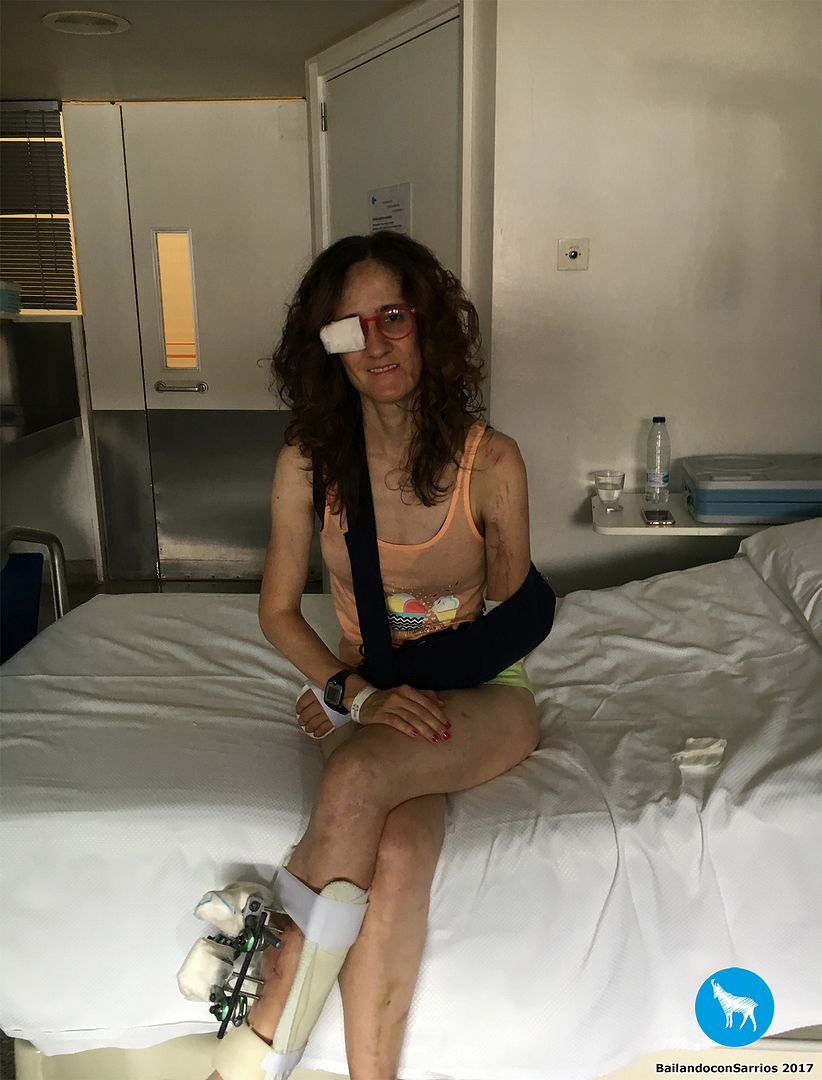El resultado del atropello ha sido politraumatismos diveros: traumatismo craneoencefálico severo con hemorragia subaracnoidea en el cerebro y con fractura del maxilar izquierdo, fractura de tíbia y peroné izquierdos, fractura de húmero, cúbito y radio izquierdos con lesión en el plexo braquial izquierdo, fractura de clavícula derecha y diplopía (visión doble) debido al golpe en el ojo izquierdo y en el cráneo. Si hubiese tenido unos cuantos años más o si mi forma física no hubiera sido muy buena debido al deporte, seguramente hubiera muerto.