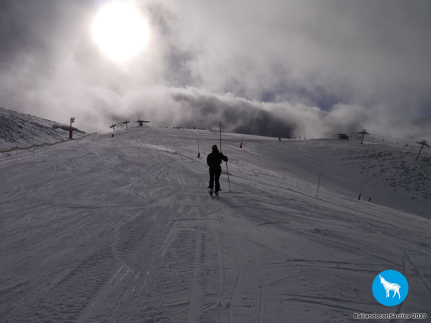 Martín se adelanta para sacarme algunas fotos de frente en esta zona con un poco más de inclinación, o sea una pista azul... crucemos los dedos para que no me caiga... :O