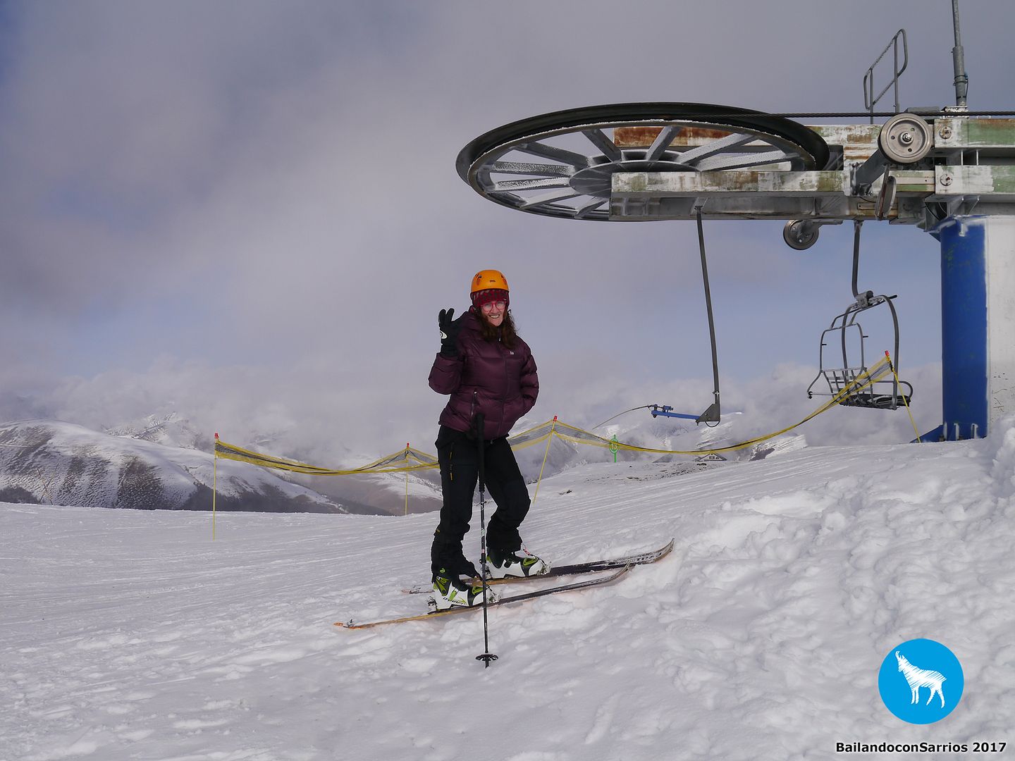 Posando junto al final de otro telesilla ubicado muy cerca del punto más alto.