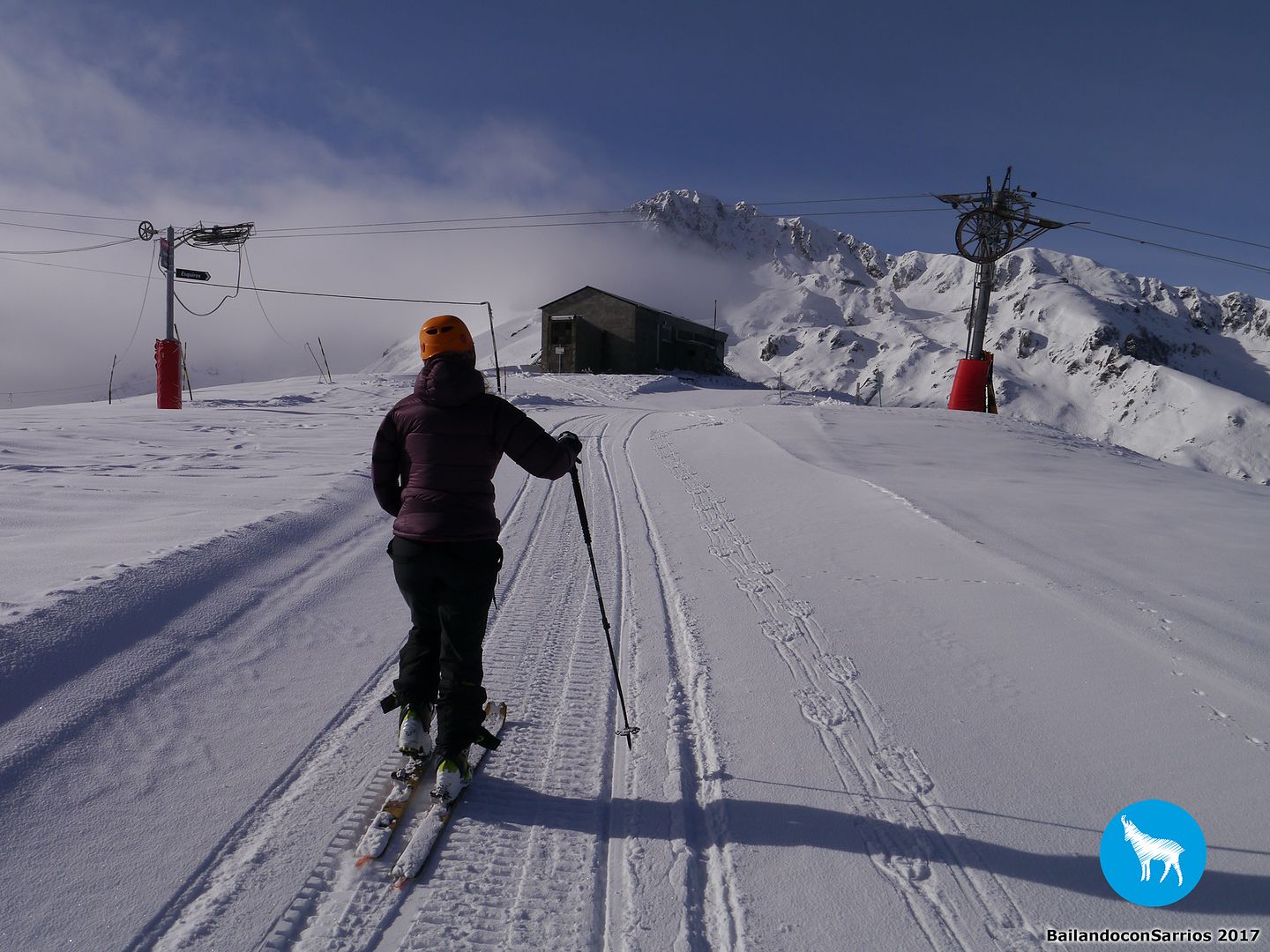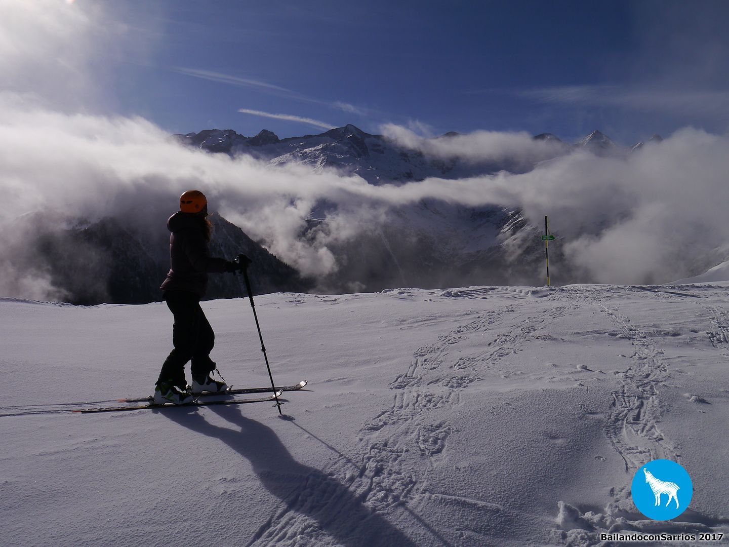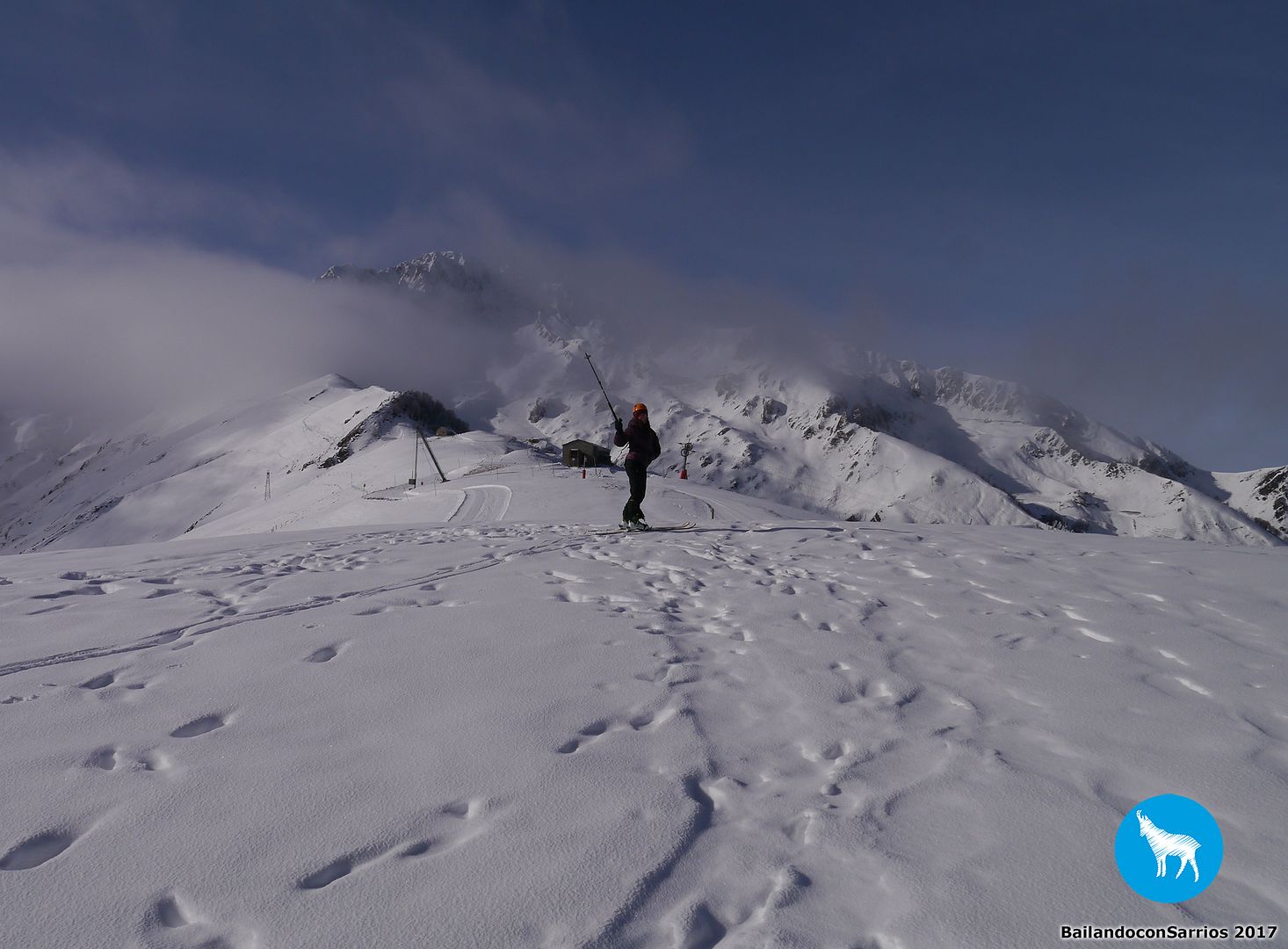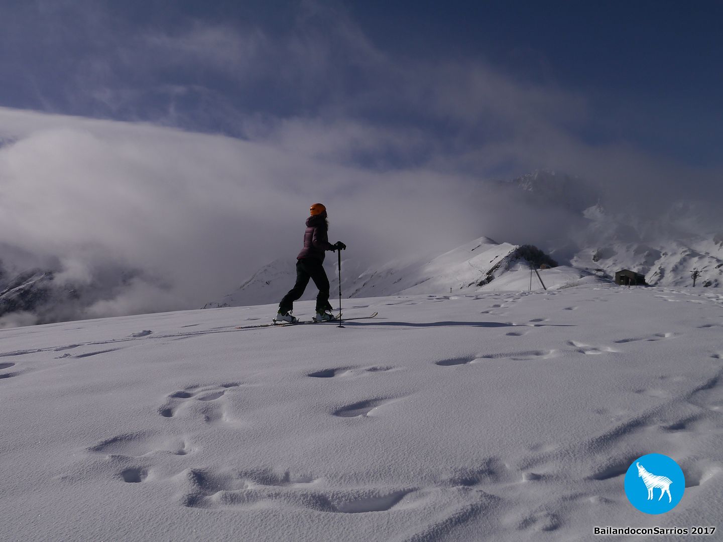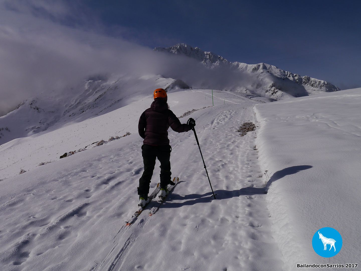 Martín me comenta varias veces que si no lo veo claro, opte por quitarme las tablas y bajar andando pero yo le comento que quiero probar para ver qué tal se me da el esquí de montaña en estas nuevas condiciones.