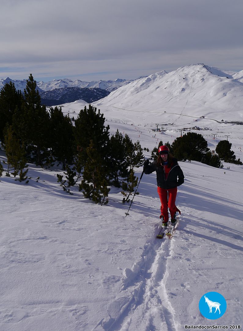 Alcanzamos el final del telesilla y observamos un momento el entorno para ubicar dónde puede estar la "cima"... está de camino al TUC DE BERET por lo que abandonamos la proximidad de las pistas y nos encaminamos foqueando en su dirección... foquear por nieve sin pisar me encanta!!!