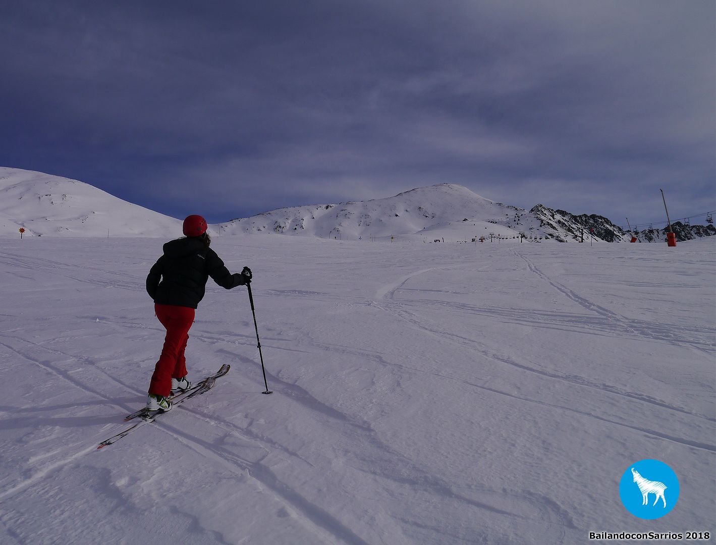 Mientras Martín va esquiando lo que puede, con mis tablas en la mano, yo bajo andando muy cansada... andando y llorando, llorando por la rabia que me da no poder esquiar y no poder disfrutar... en dos ocasiones, dos monitores de esquí me preguntan si estoy bien y si dan el aviso para que venga a buscarme una moto, a lo que les digo que no... :)