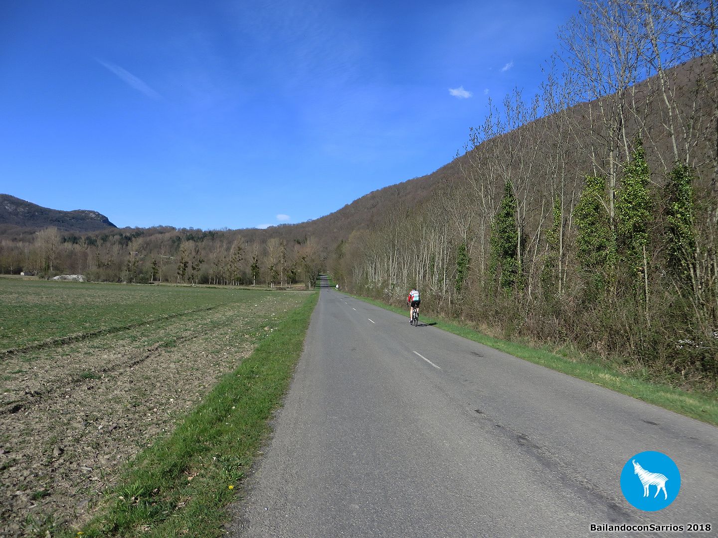 Apenas hablamos, él seguirá bajando hasta llegar a Fronsac, donde calentará unos minutos antes de comenzar a subir, espero me dé tiempo a ascender, por lo menos, hasta el cartel que marca que faltan tres (3) kilómetros para la "meta".