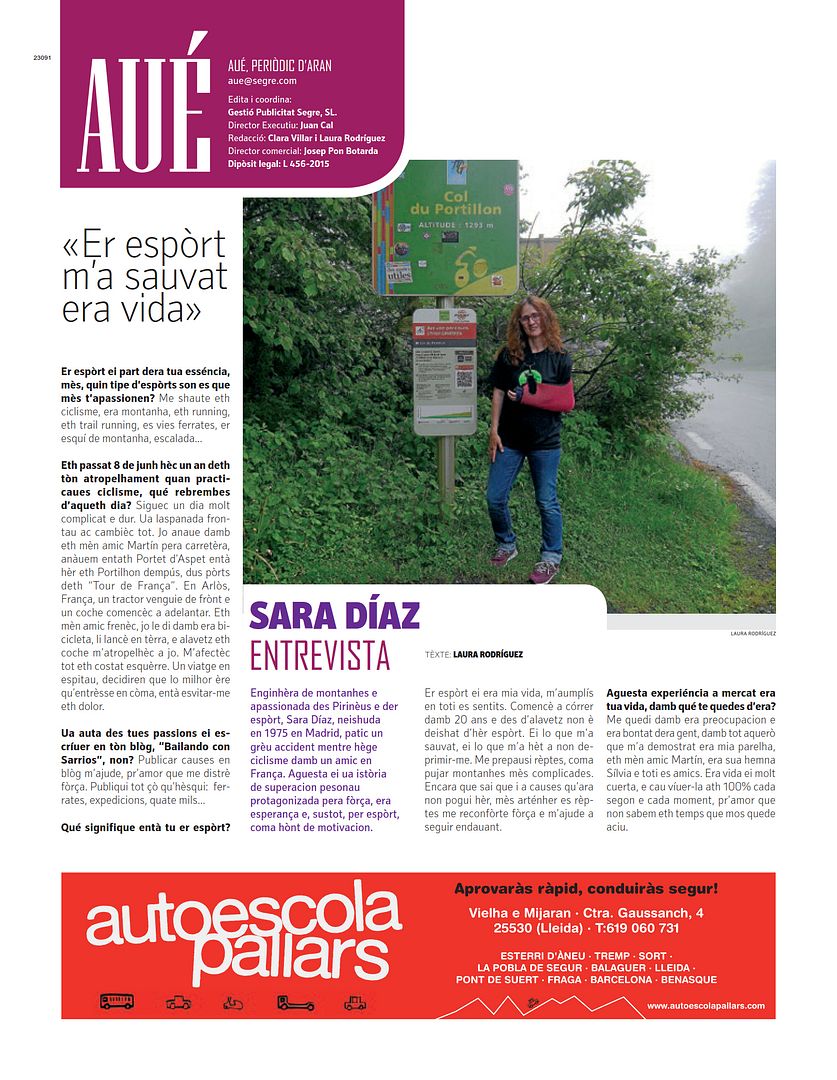 Pues eso, aprovechando todo este material, Laura Rodríguez Palacín, periodista de ARAN TV y parte del equipo de redacción de AUÉ TV, ha publicado mi entrevista en este periodico, suplemento de Grupo SEGRE.