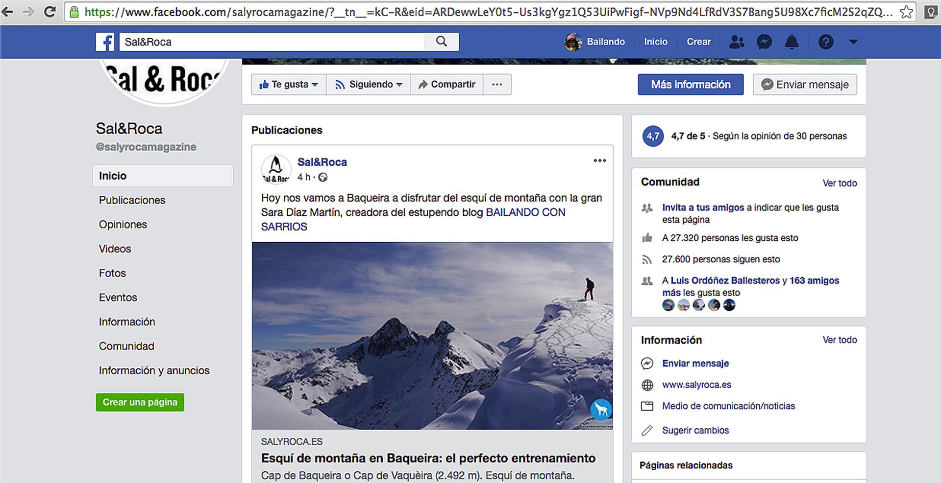 El enlace de la página de Facebook de SALYROCA.ES, donde mi colaboración aparece publicada el día 24 de Febrero de 2019: