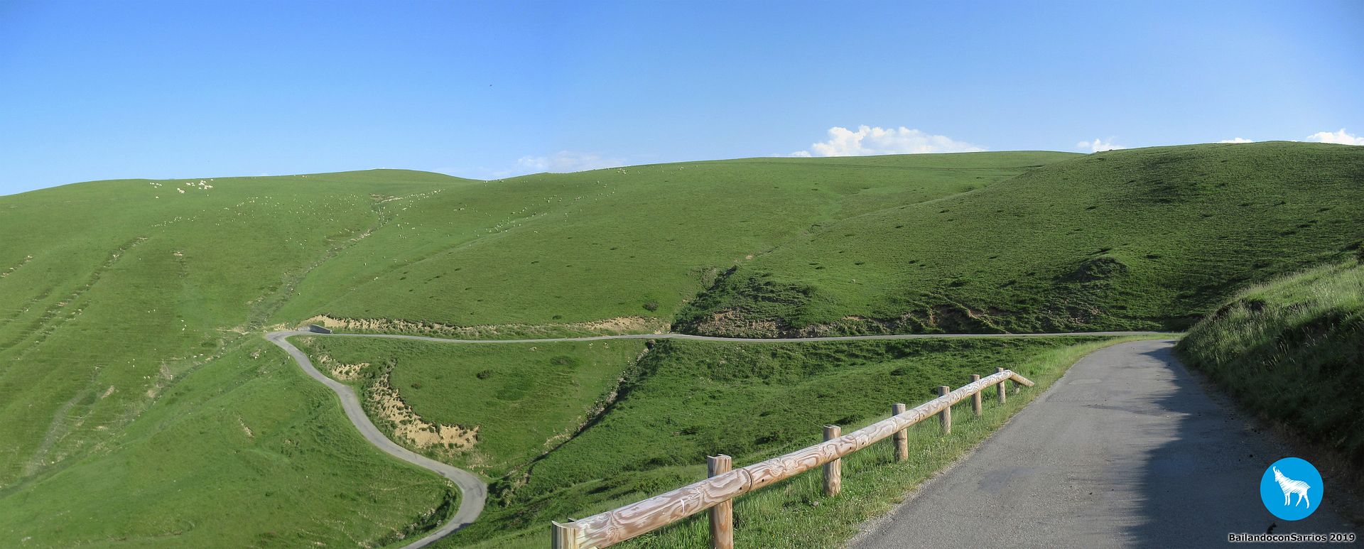Sigo rodando pero, al alcanzar el último kilómetro, observo que centenares de ovejas ocupan la carretera y los laterales, así que, con mucha prudencia, me bajo de la bici y sigo "a pata" el kilómetro que me queda.