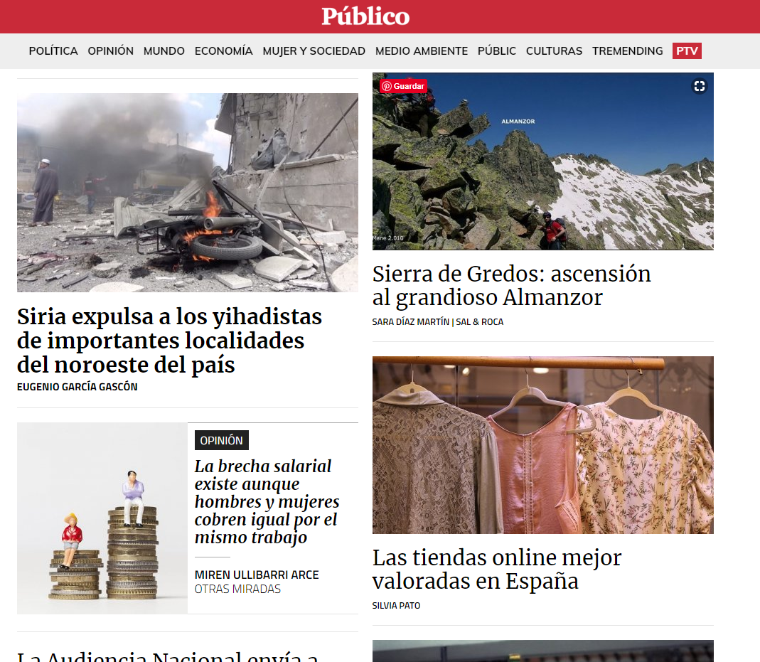 Además de aparecer en la portada de SALYROCA.ES, mi colaboración también aparece en la portada de PÚBLICO.ES, donde mi colaboración aparece junto a otras noticias muy relevantes... :O