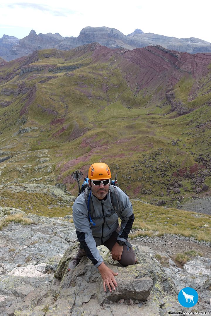 Alcanzamos el Collado de Anayet o Collado Rojo donde hacemos una breve parada para beber agua, para ponernos el casco y para hacer un montón de fotos antes de continuar.
