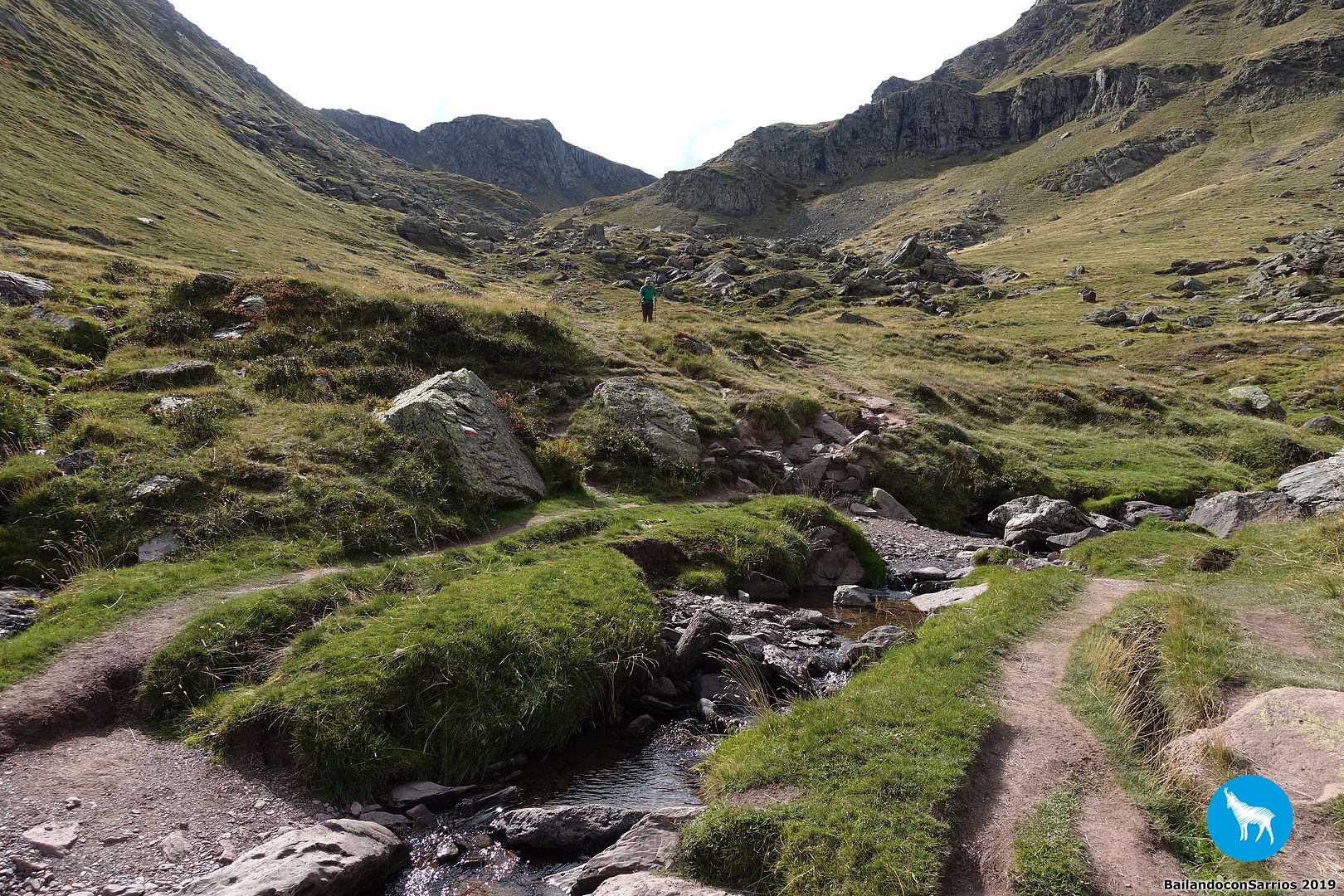 Antes de llegar al collado, paramos para quitarnos el casco y para comer unas barritas, unos frutos secos y beber un poco de agua antes de continuar... la verdad es que me encuentro en perfectas condiciones a pesar de la tensión durante todo el descenso.